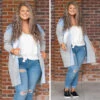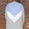 The cardigan is better than any before! It has a chunky chevron pattern with shades of blue, gray and white. This cardigan would pair so well over a basic top and jeggings!