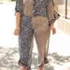 You’ll be stuck in serendipity in this gorgeous jumpsuit! It has a soft mocha color with a trendy leopard pattern and colorblock design that is super sweet! Style this jumpsuit with some cute accessories and booties for a classy chic look!Â