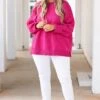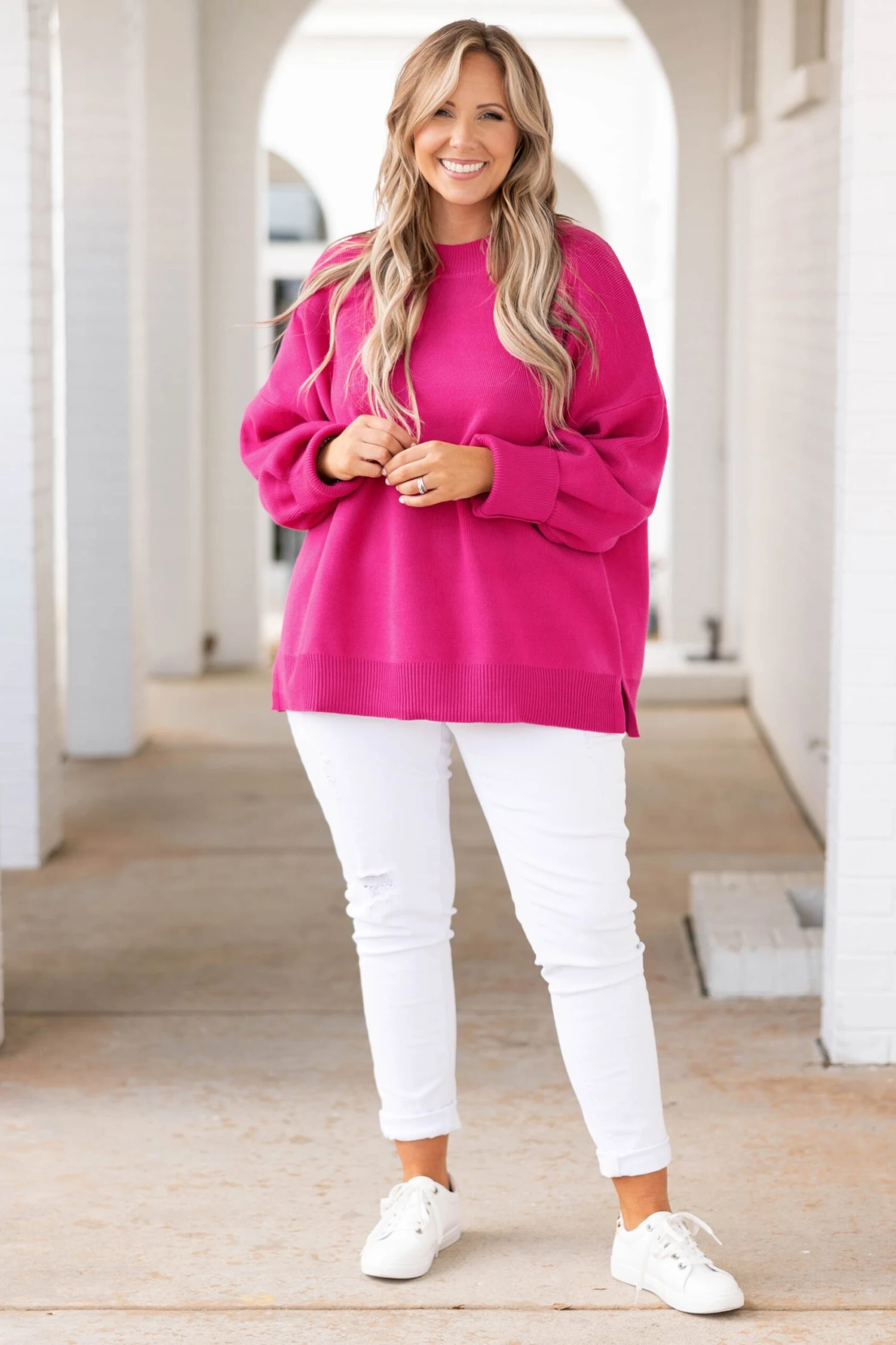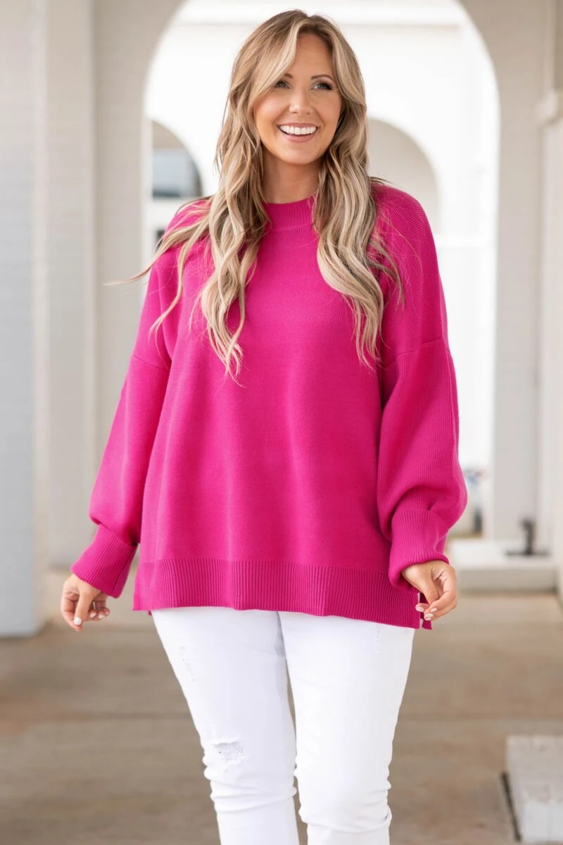 This sweater is truly stunning! The mesmerizing pink color and knitted design is so cozy and sweet! The stretchy, figure flattering fit is perfect for those breezy days throughout the season! Style this sweater with some white denim and sneakers or sandals for a classic chic look!