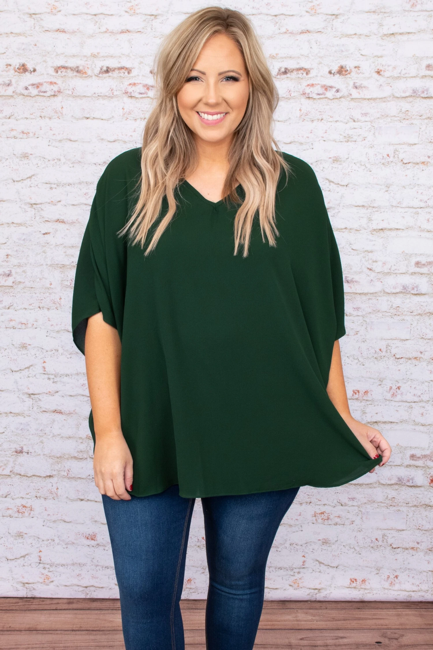This top is simply stunning! It has a solid color that’s perfect for the season! It can be dressed up or down for every occasion, has an oversized fit, and features the cutest flowy fabric! Simply style this top with skinnies and booties for an effortlessly chic look!Â