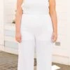 Look as stylish as a princess in this jumpsuit! The off white color is so chic and the ruffles on the sleeves are so sweet! We love the cropped style of the bottom that is trendy and the tie back is so fun! Style this with some heels or wedges for a chic look!