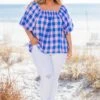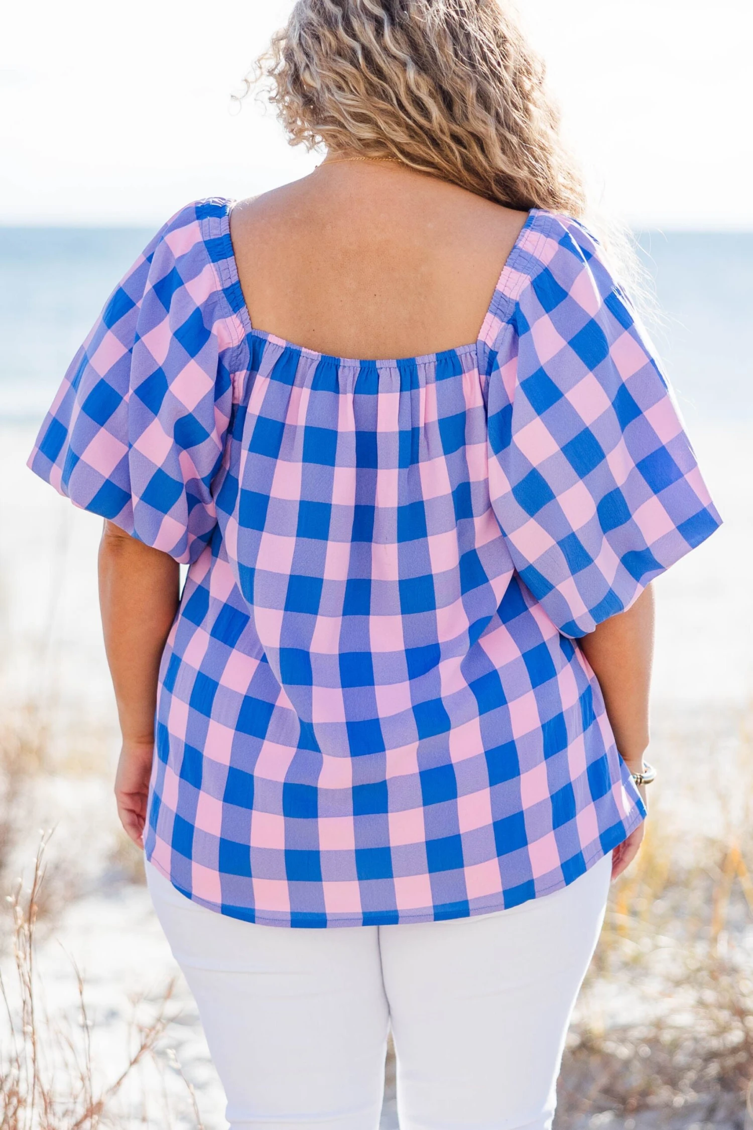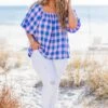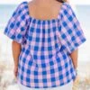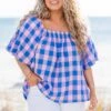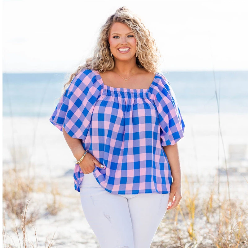 This top is as sweet as sugar! It features a classic plaid pattern, making it a timeless addition to any wardrobe! The blue-pink color adds a feminine touch, while the top’s versatility allows you to pair it with white denim and wedges for a classy chic look!