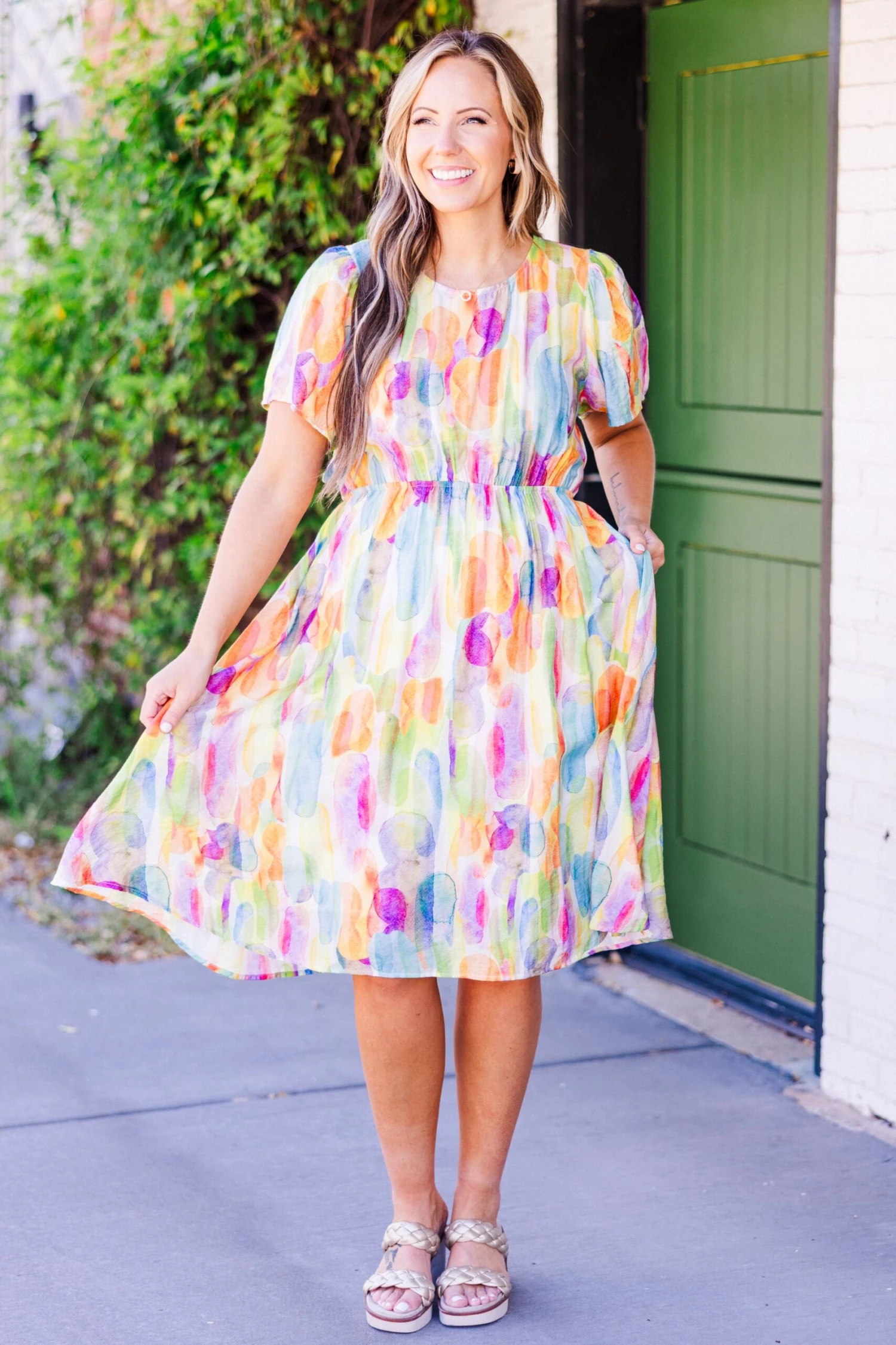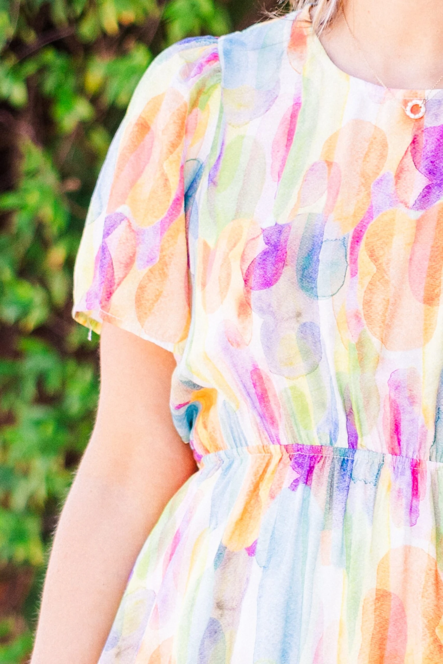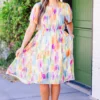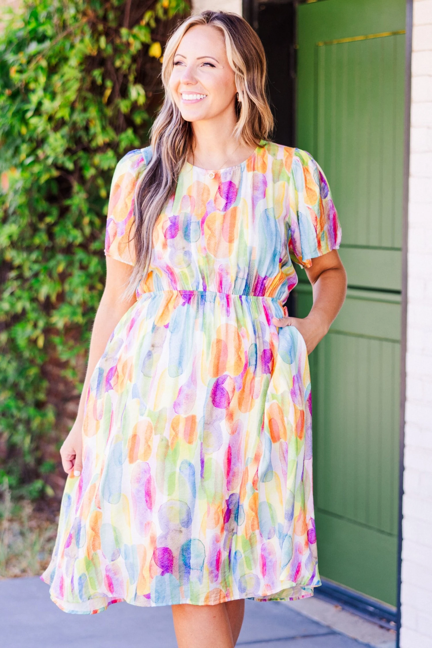 Indulge in the Summer Files Dress in orange combo, perfect for any occasion! Featuring a stunning watercolor print, a cinched waistline, and a functional waist tie, this dress is a must-have for your wardrobe! Embrace the rounded neckline and elevate your style with ease! Experience the epitome of summer fashion!
