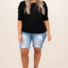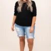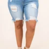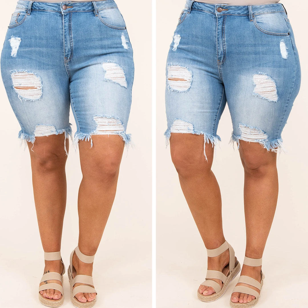 Take on the Summer heat in these trendy shorts! These shorts have a classic light wash you can style with your favorite pieces! They’re comfortable for all-day wear, have a figure-flattering fit, and feature the cutest distressed and frayed hemline! Pair these shorts with a flowy top and shorts for an easy everyday look!Â