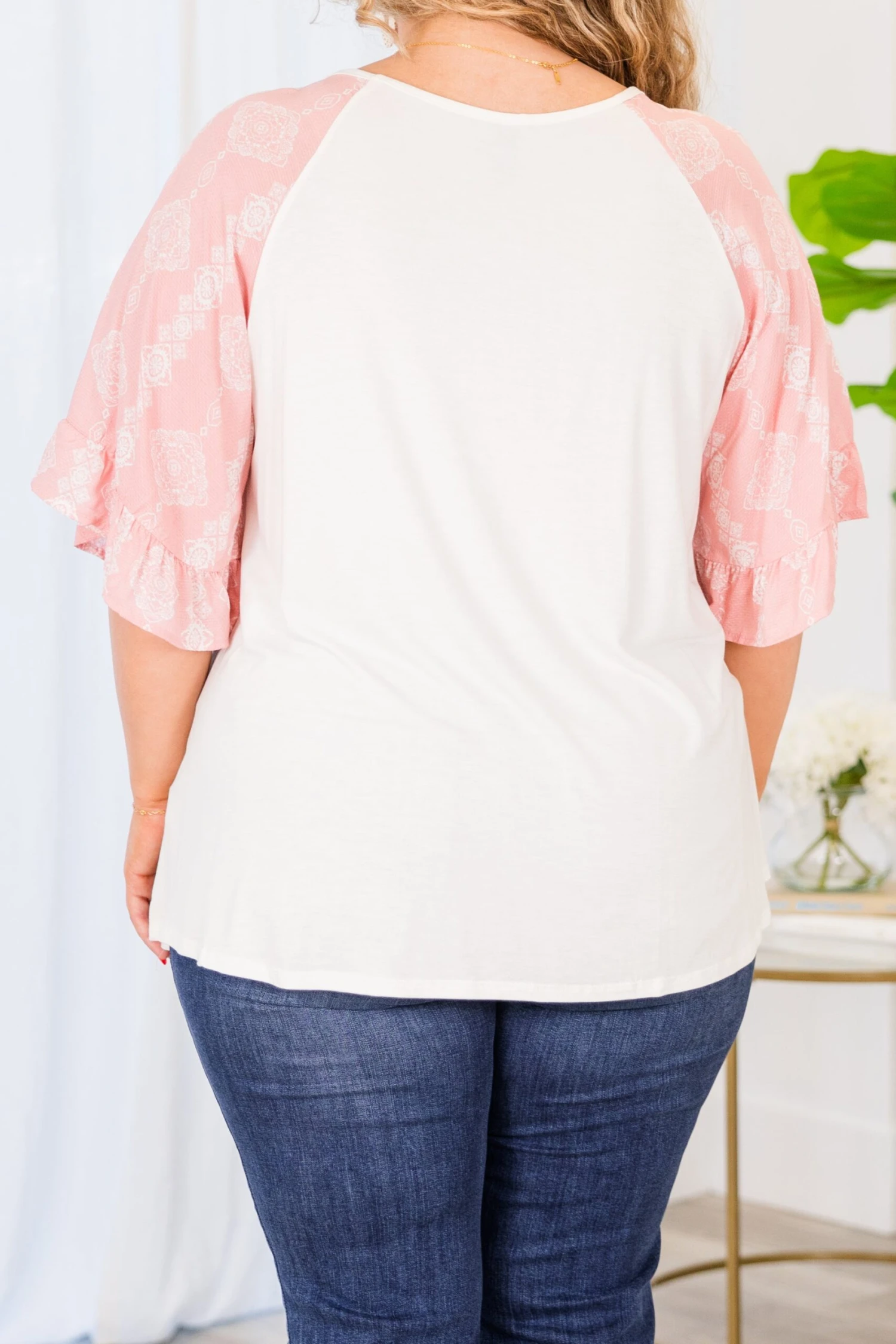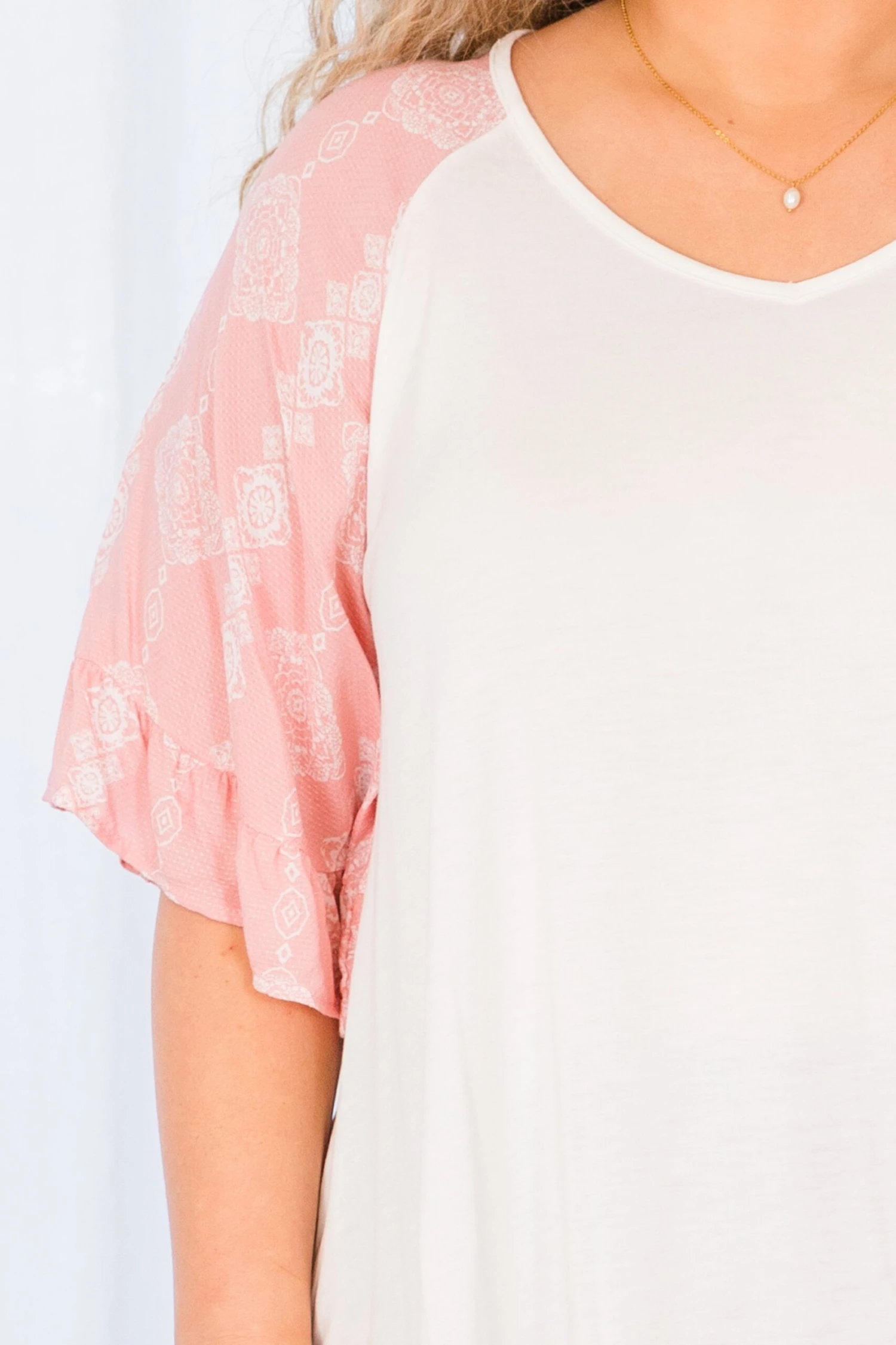 Expertly designed for all-day comfort, the Summer Sunset Top in Pink features delicate ruffle detailing and flutter sleeves for a feminine touch.! Perfect for a day out on the town, this top also boasts a beautiful floral detail along the sleeves that is just what the season called for!