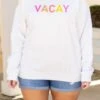 There’s no way you’ll miss out on grabbing this cute vacay sweatshirt! This top has a fun graphic print with colors that are perfect for the season! It’s comfortable for all-day wear, has a figure-flattering fit, and can be styled with your favorite shoes and accessories! Pair this top with shorts and sandals for an easy everyday outfit!
