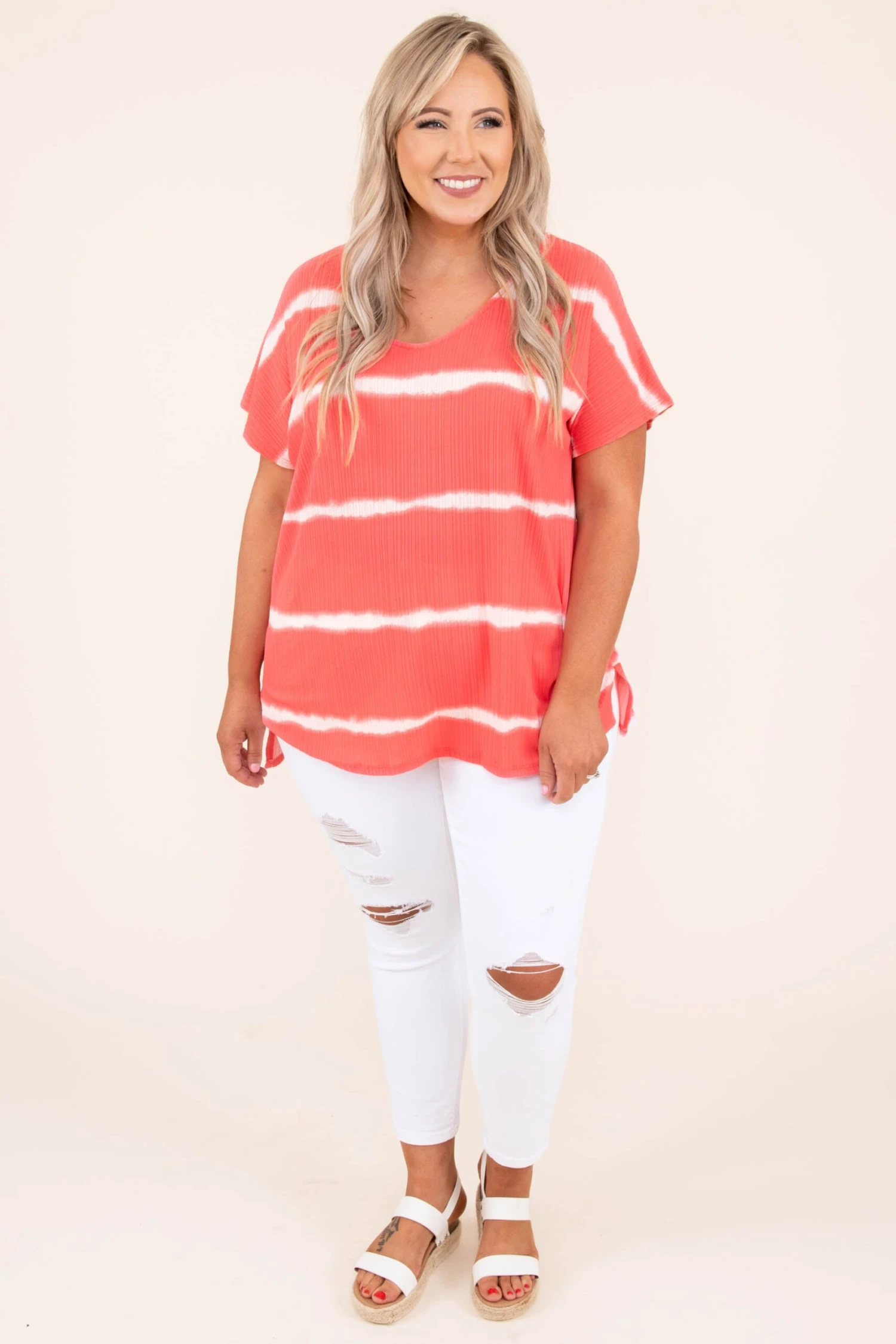 Strut through a summer wonderland in this top!! It’s a loose, relaxed-fitting top with a classic stripe print and the cutest pocket! It’s great for lounging, running errands, or grabbing lunch! Just add skinnies for an easy, effortless outfit!