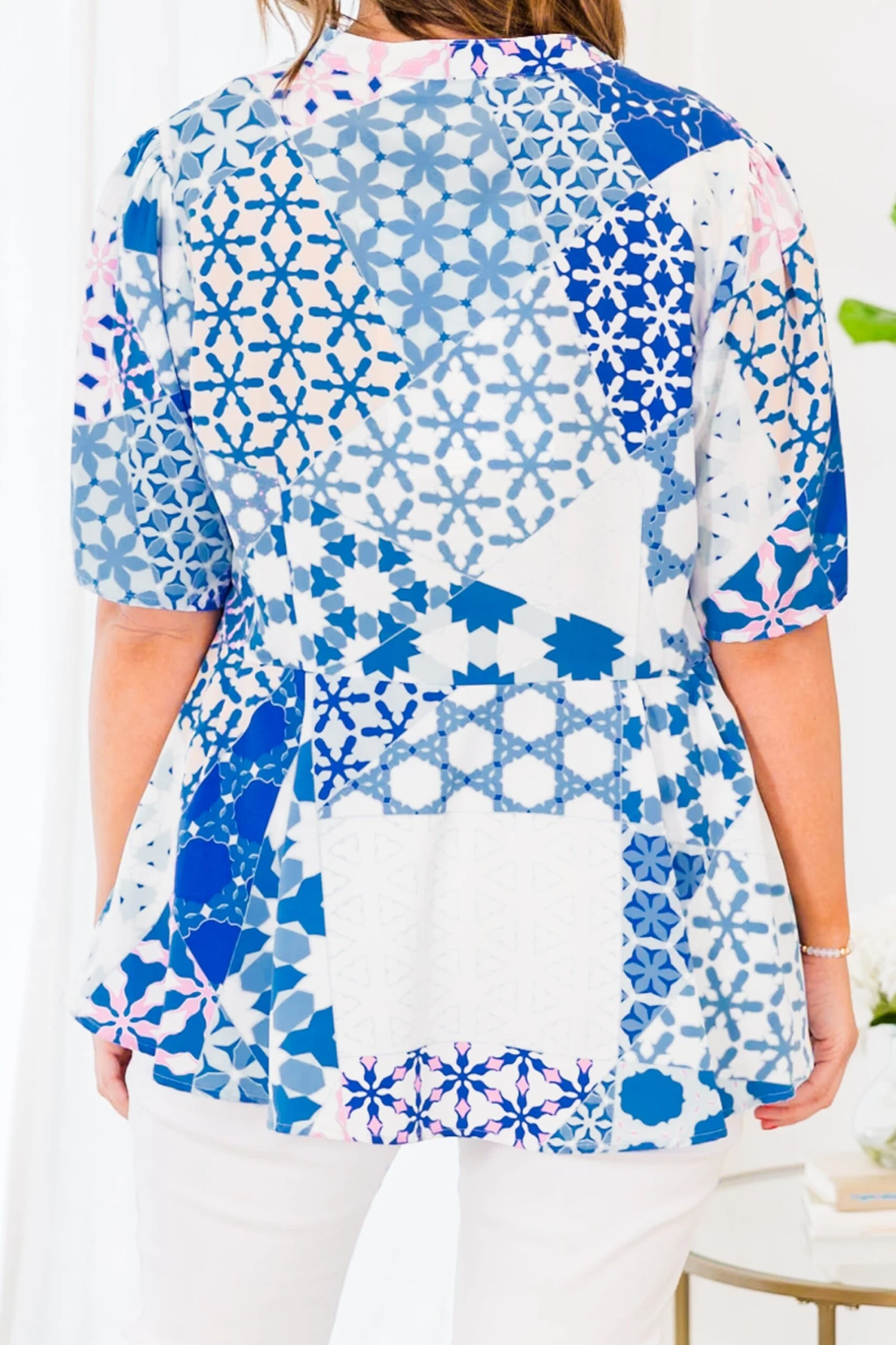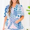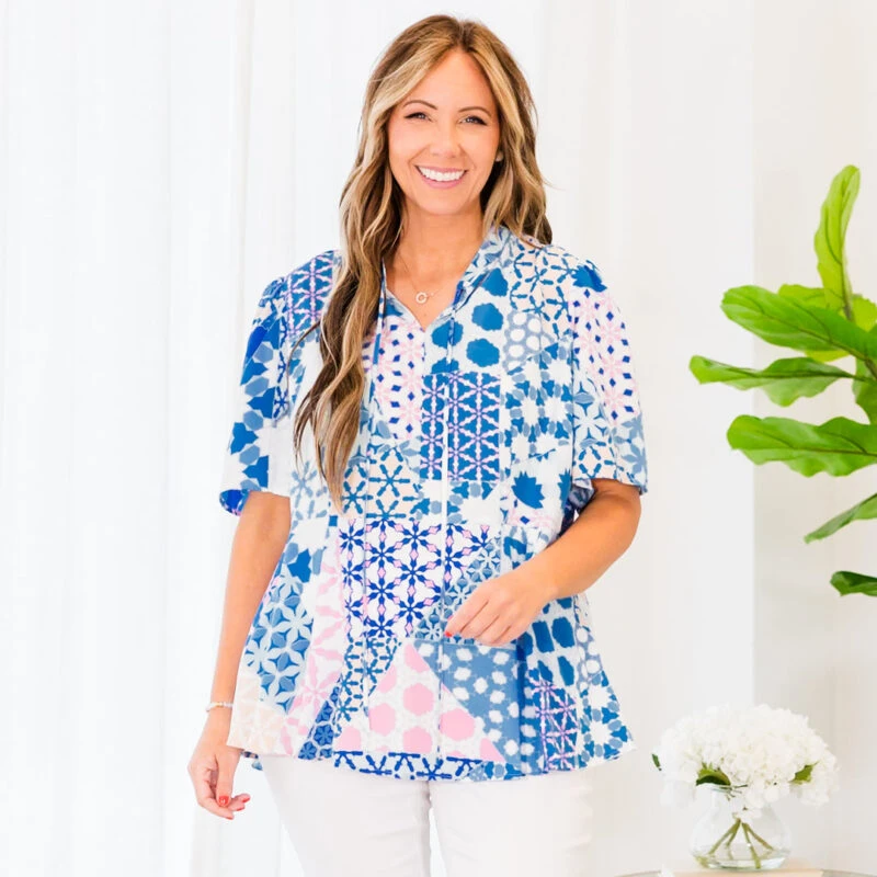 This beauty will help you get rid of those summertime blues! This top in a classy blue hue features an adorable neck tie and a playful floral pattern! Add a pop of color to your wardrobe and stand out in style with this must-have top!