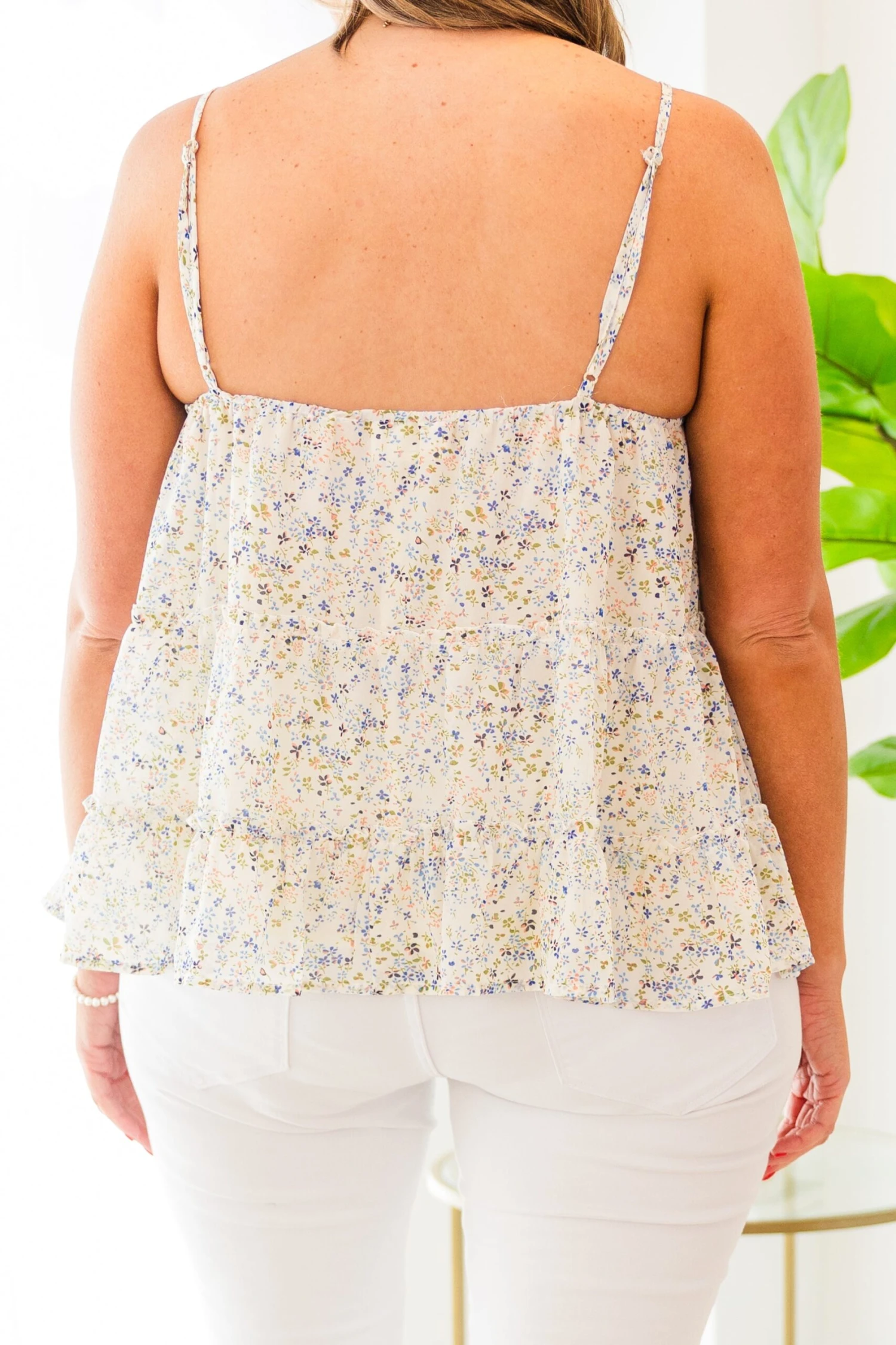 Stay comfortable yet stylish on hot summer days with this tank in cream! Enjoy the intricate floral detailing and lace accents on the bust, while the adjustable straps and tiered babydoll silhouette provide the perfect fit! Keep cool and fashionable all season long!