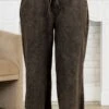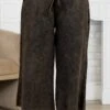 These ash black colored sweatpants, made of acid washed fleece, provide both style and comfort! With an elastic waistband and functional pockets, they offer convenience and functionality, while the drawstring allows for a customizable fit! Perfect for lounging or running errands!