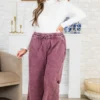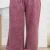 These eggplant colored sweatpants, made of acid washed fleece, provide both style and comfort! With an elastic waistband and functional pockets, they offer convenience and functionality, while the drawstring allows for a customizable fit! Perfect for lounging or running errands!