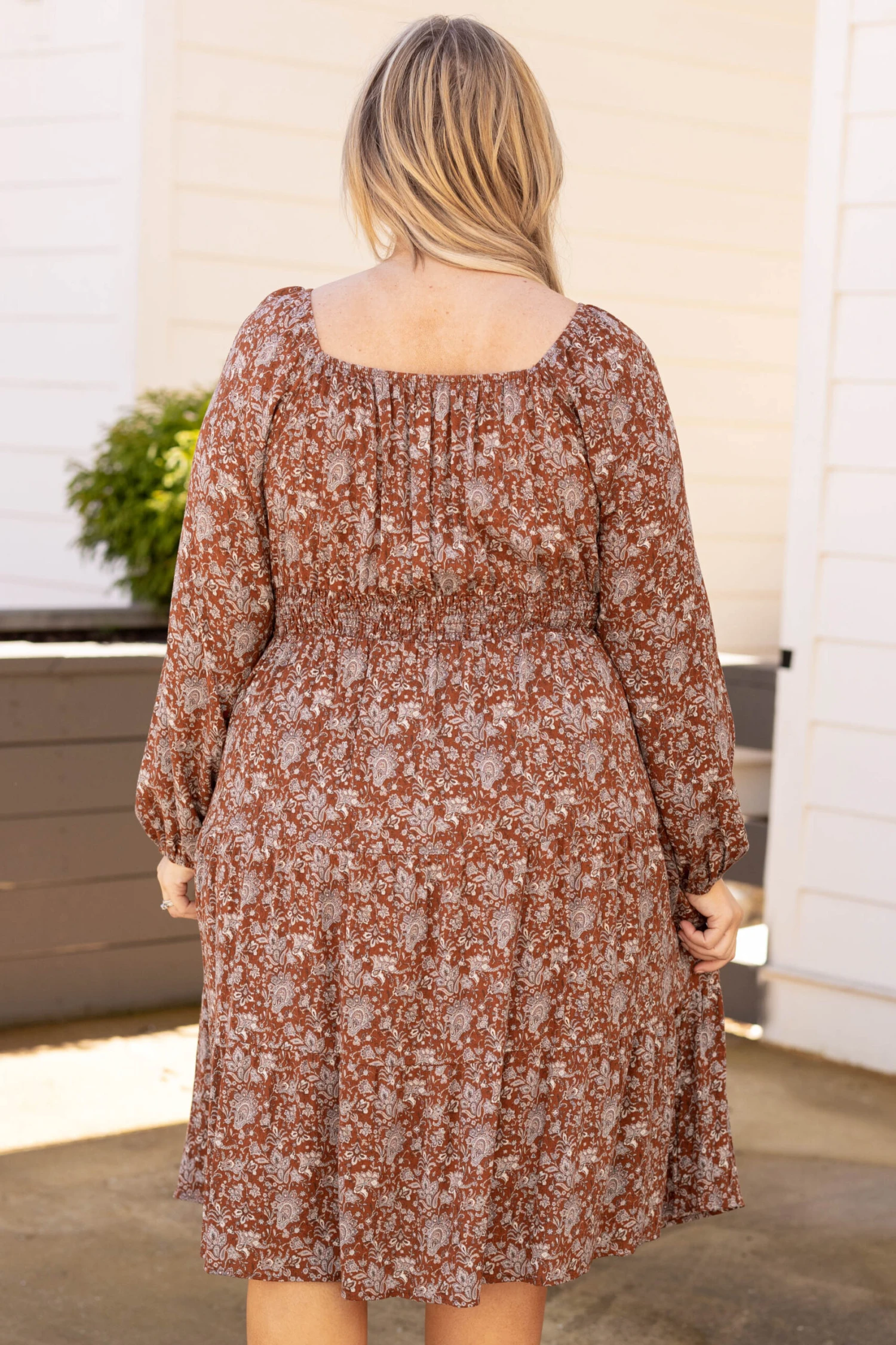 Take a stroll down sunrise avenue in this chic dress! The brick color is so cute and the paisley pattern is such a classic! This cutie has a smocked cinched waist to hug you in all the right places and the midi length is so trendy right now! We love this with some white heels and a fun headband to look so stylish!
