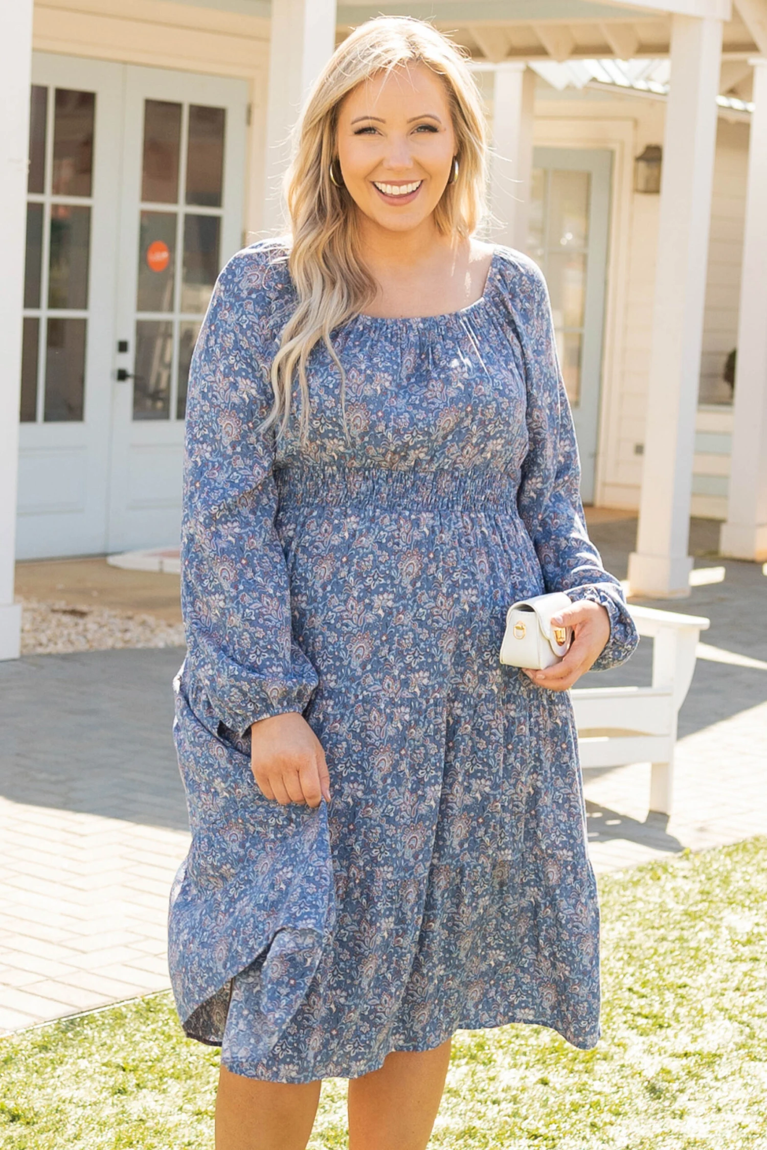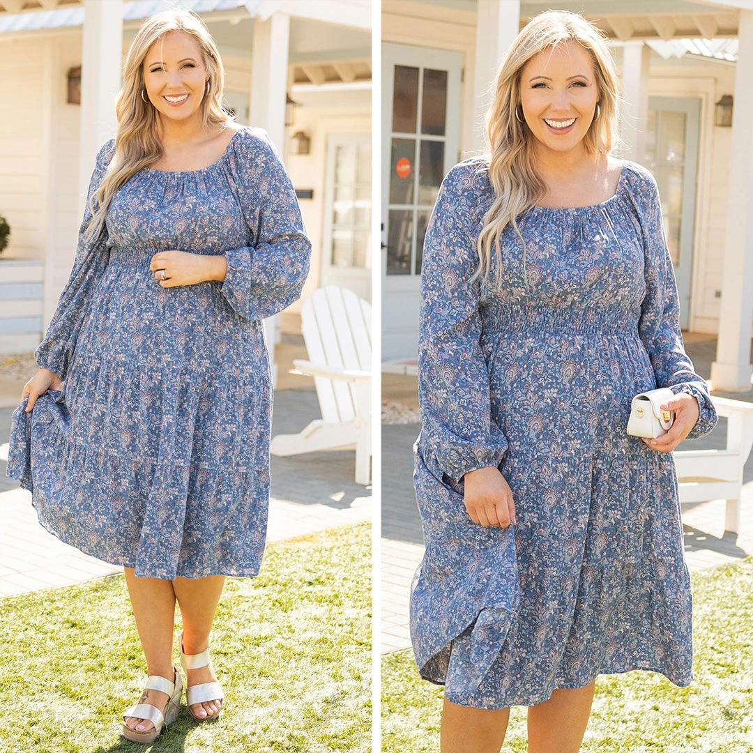 Take a stroll down sunrise avenue in this chic dress! The dusty blue color is so cute and the paisley pattern is such a classic! This cutie has a smocked cinched waist to hug you in all the right places and the midi length is so trendy right now! We love this with some white heels and a fun headband to look so stylish!