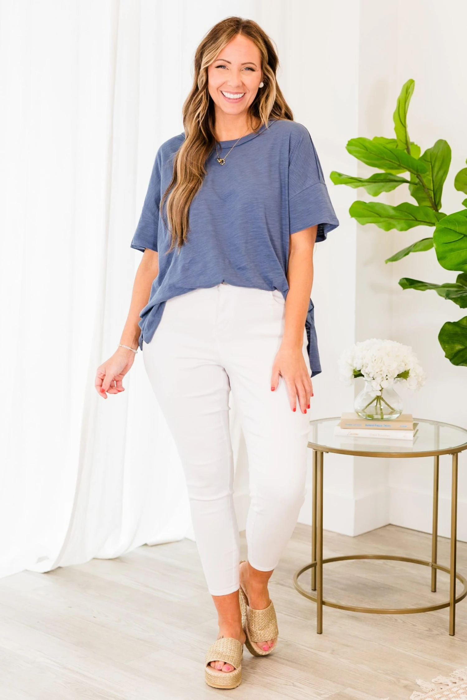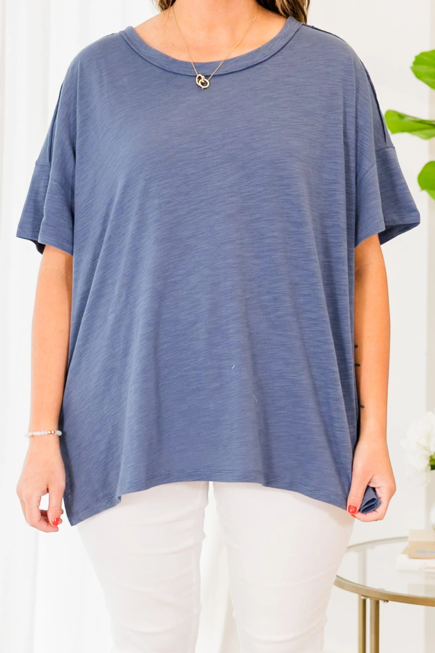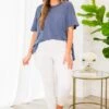SURPRISE, your new favorite top is here! It features the ultimate comfort and style in a pretty denim color! Lightweight and perfect for pairing with skinnies or shorts, this top is great for all day wear! Make a statement in this versatile and trendy top!