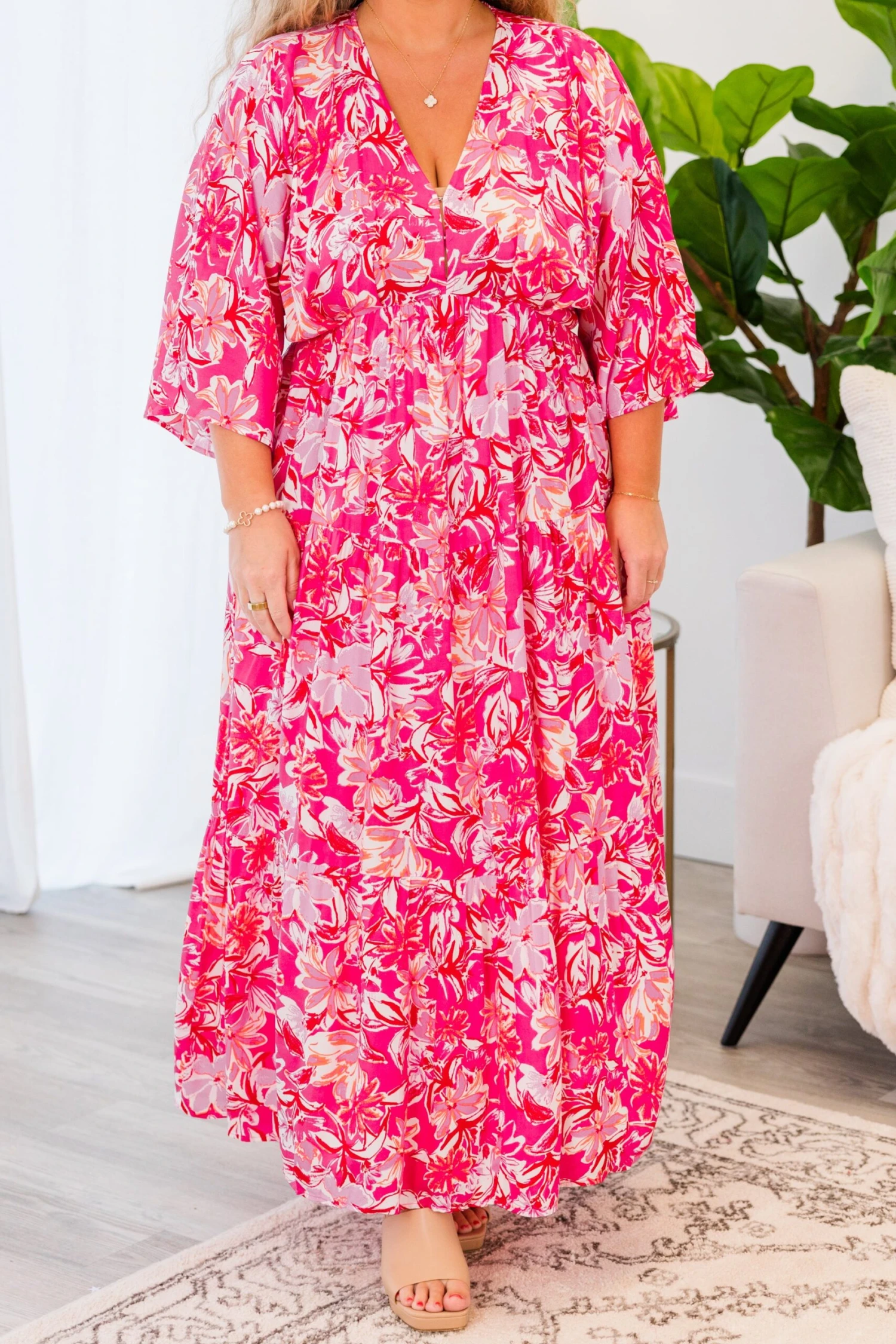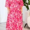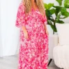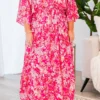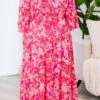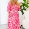 The Sweet At Heart Dress in pink is the perfect addition to your summer wardrobe! This maxi dress features a tiered skirt and dolman sleeves, providing both style and comfort! The v-neckline and floral print add a touch of femininity, while the hook and eye closure at the bust and back elastic waist ensure a perfect fit! Whether you’re off on a summer vacation or a day date with your better half, this dress has got you covered!