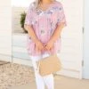 This top is both chic and comfy! It has a pretty floral pattern with neutral colors you can style for every occasion! It’s comfortable for all-day wear, has an oversized fit, and features the cutest babydoll fit! Pair this top with skinnies and sandals for an effortlessly chic look!Â