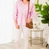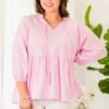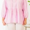 Every conversation in this cutie will be a sweet one! Expertly designed and crafted, this top in Pink boasts a babydoll design and flowy fit for a flattering silhouette! The pretty pink color adds a touch of feminine charm, while the delicate ruffle detailing adds a hint of playfulness! Elevate your wardrobe with this must-have piece!