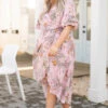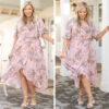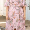 Be as sweet as a Georgia peach in this stunning wrap dress! The peach color is so pretty when paired with the beautiful floral design! The wrap dress style is so trendy and elegant and the flutter sleeves are so sweet! The satin feel of this dress is so luxurious and the wrap tie can be adjusted to however loose or tight you want it! Style this cutie with some heels and a great purse for the perfect look at your next event!