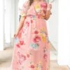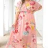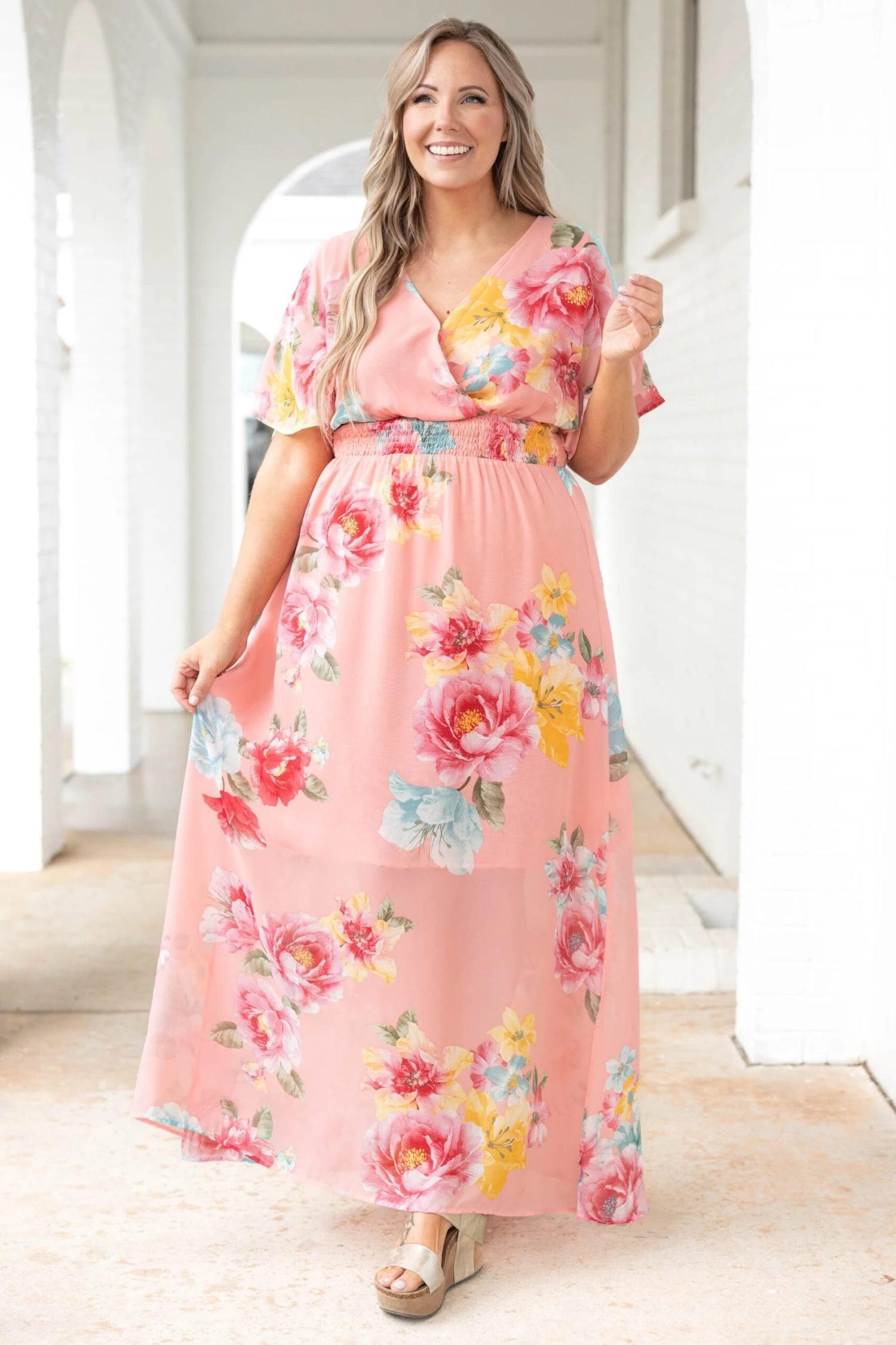 The beauty of this dress is so sweet! It has a soft coral pink color with a trendy floral pattern and crisscross neckline that is super chic! Grab this dress for your next brunch date with the girls and pair it with some wedges and cute accessories!