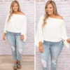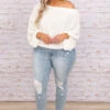 This top will keep you looking sweet! It has a pretty ivory color perfect for the season! It’s comfortable for all-day wear, has an oversized fit, and features the cutest off-the-shoulder design! Style this top with skinnies and booties for your next night out!