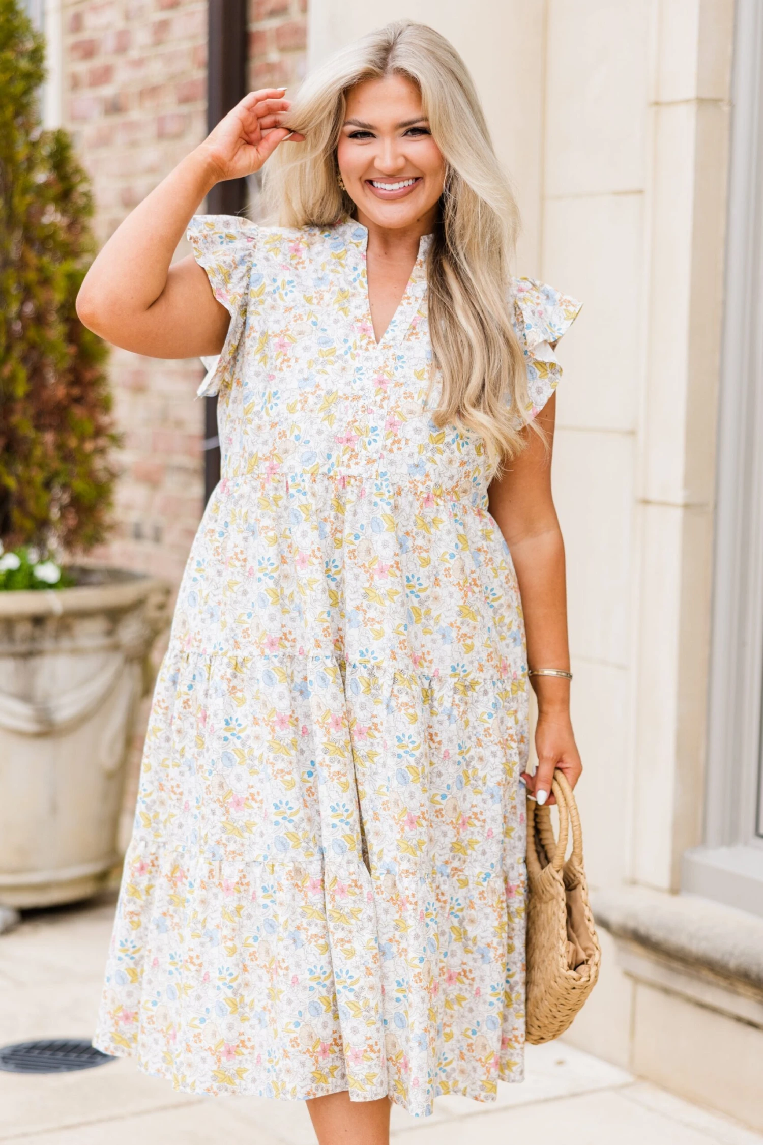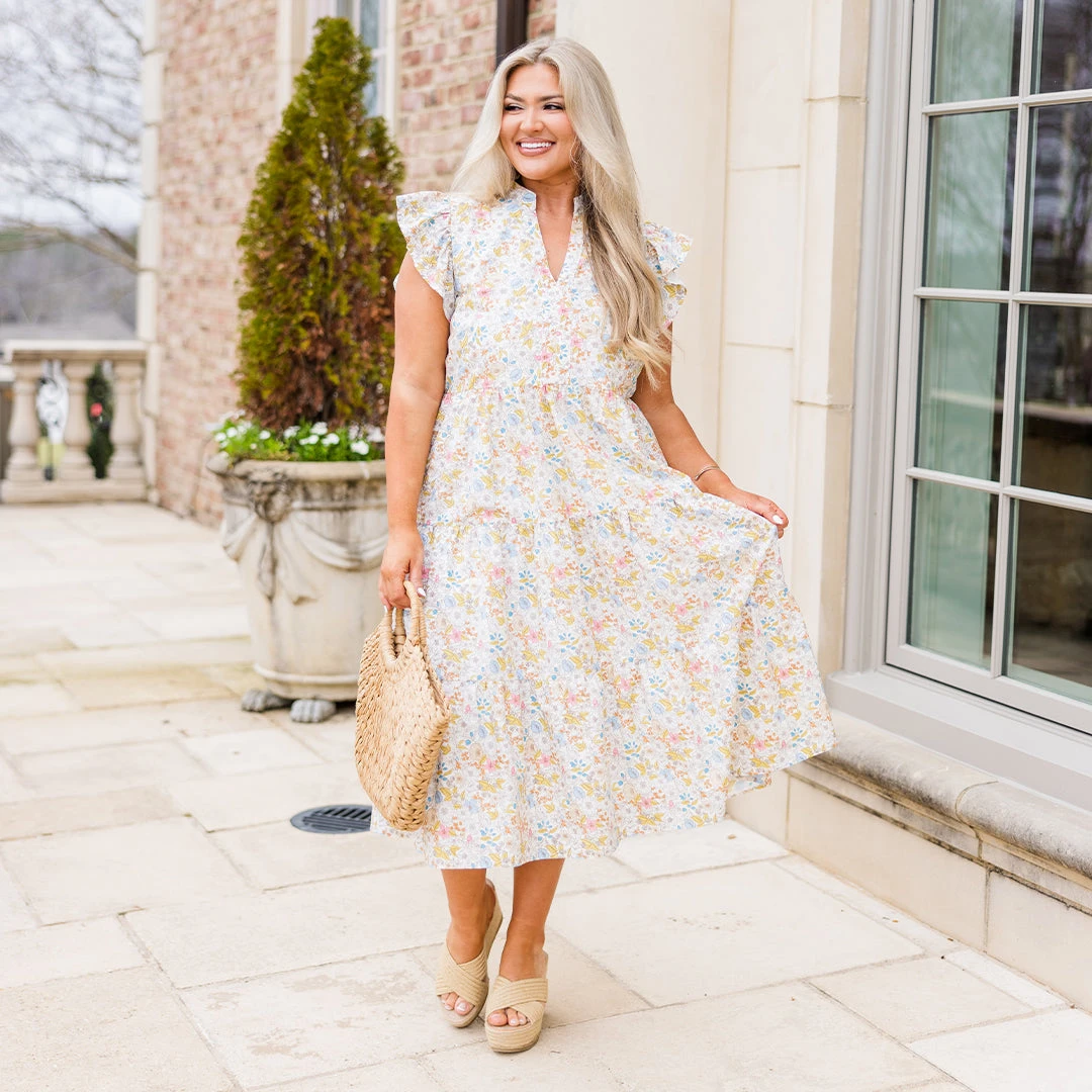We are so in love with this sweet dress! It features a charming babydoll design and a delicate floral pattern! The flutter sleeves add a touch of sass, making it perfect for any occasion! Pair it with wedges and cute accessories for a complete, chic look!