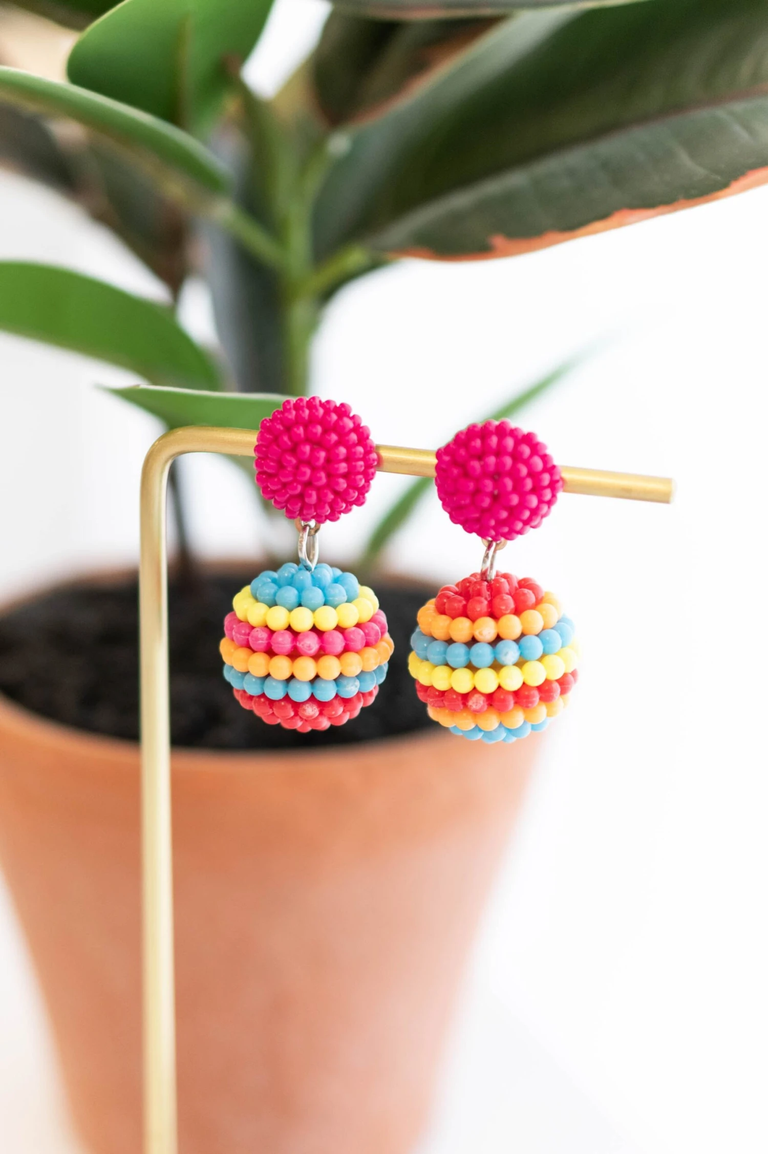 Treat yourself to these sweet earrings! They have bold multi color beaded design that is so unique and chic! The dangle style is perfect for any occasion! Style these earrings with a flirty dress or cute top and skinnies for a fun chic look!