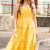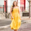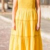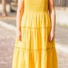 Elevate your summer wardrobe with our Sweetly Stunning Dress! Featuring a smocked bodice, delicate lace detailing, and adorable strap ties, this dress is both comfortable and stylish! With its mesmerizing honey color, it’s perfect for any occasion!Â