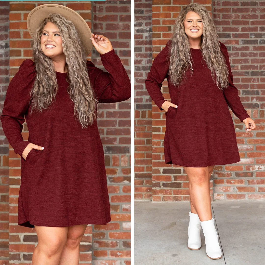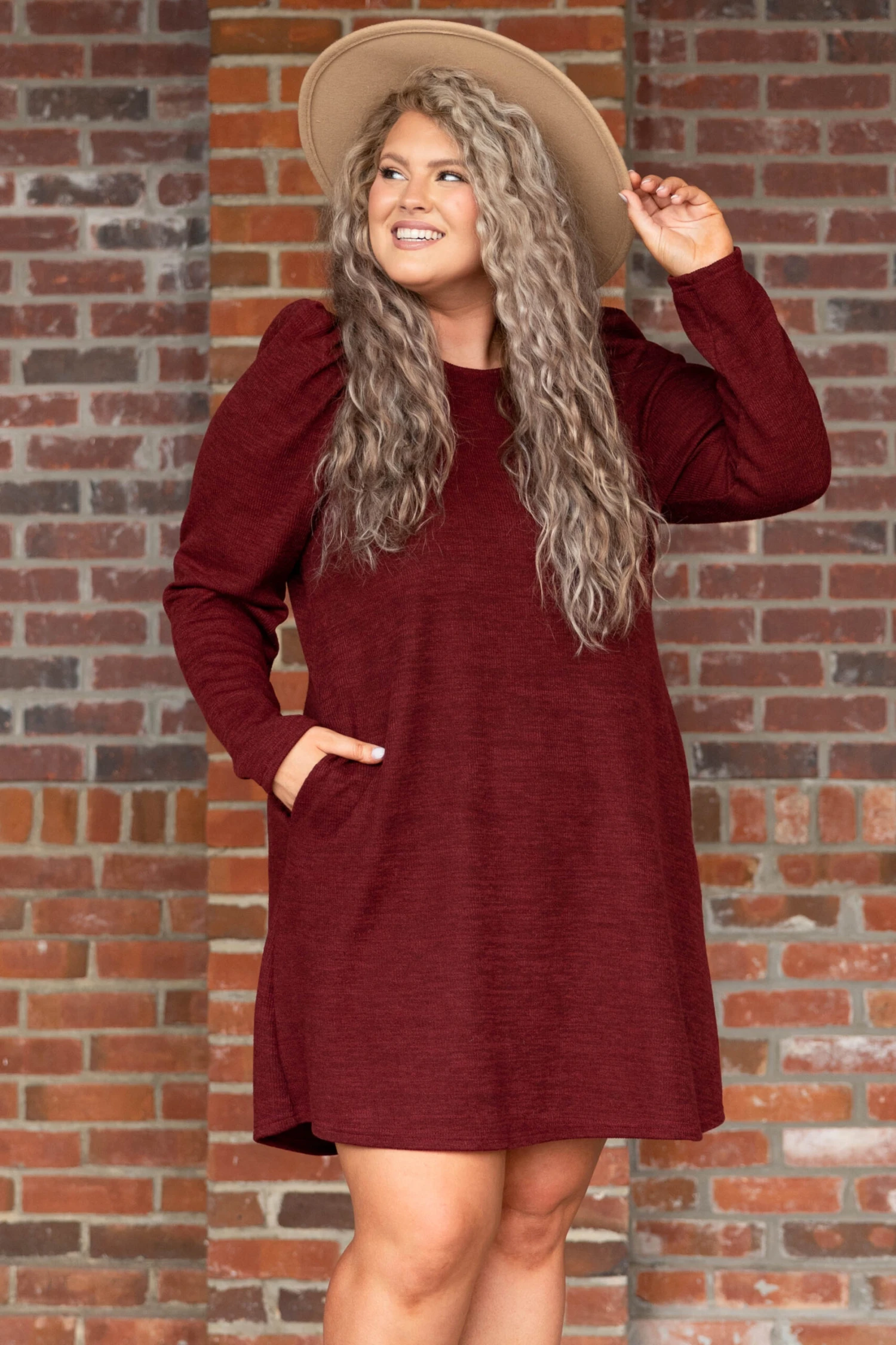 Get in the swing of looking amazing in this dress! This dress has a beautiful wine color and functional pockets that are season favorites! Simply style this dress with some cute accessories and booties for an effortlessly, chic look!Â