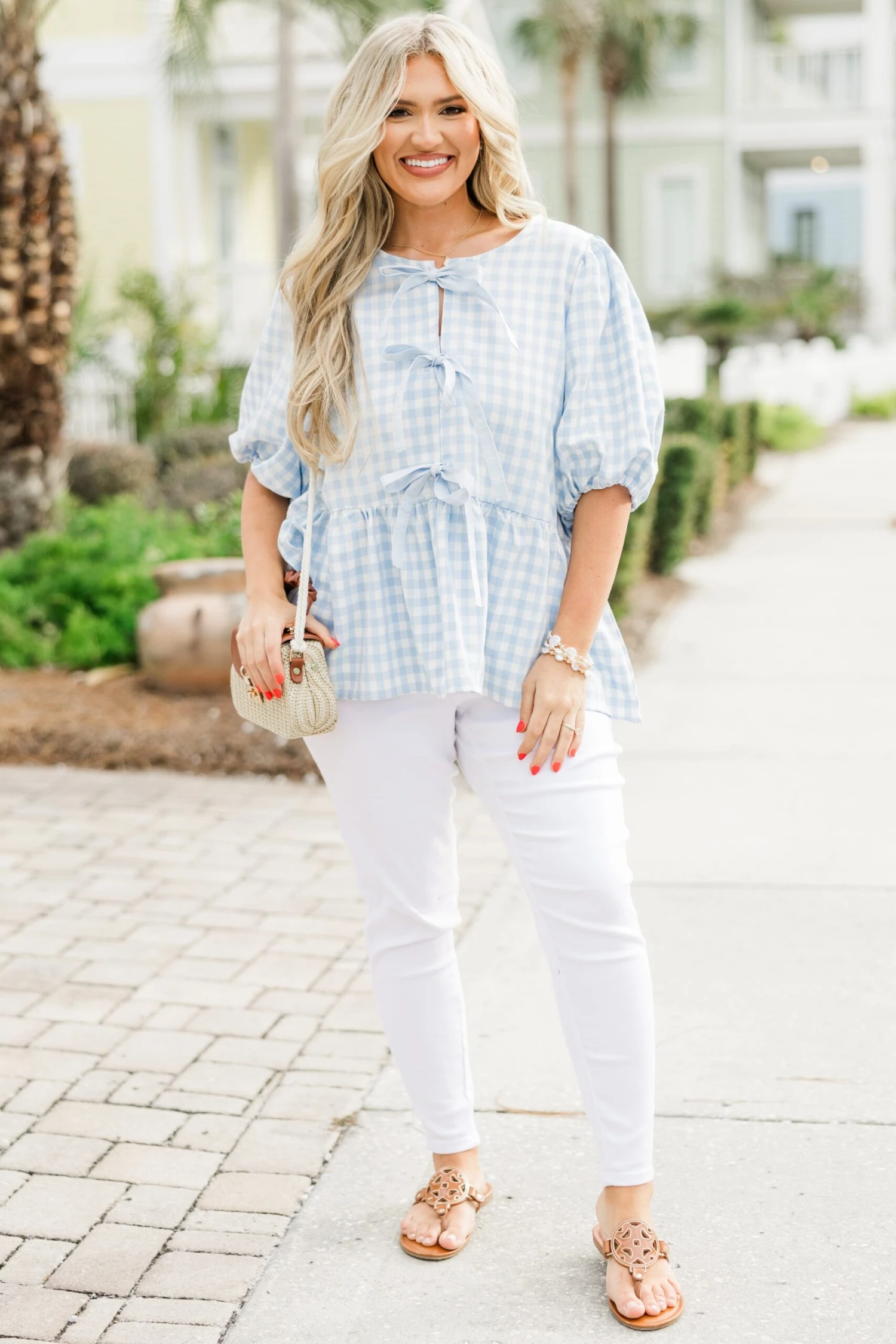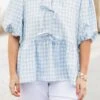 Unleash your playful side with this top! This trendy babydoll peplum top features adorable bows and elastic puff sleeves, making it the perfect addition to any outfit! And to top it off, it’s made with a cute gingham fabric! Take it easy and look fabulous in this must-have top!
