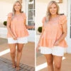 Go on a brunch date in this top! The melon color is so stunning and the textured checkered fabric is so stylish! This cutie as an adorable babydoll style with flutter sleeves that will make your heart skip a beat! The neckline is elastic so you can stay comfy all day! Style this top with some white shorts and a cute pair of sandals to have everyone jealous of your style!