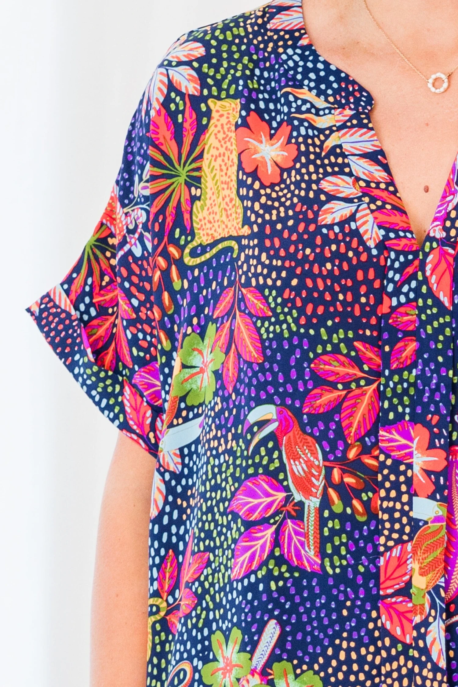Introducing our Take Some Time Off Top in navy! Featuring a split v-neckline and bold tropical floral print, this top is perfect for your next vacation! The v-neckline adds a touch of sophistication while the print adds a fun and tropical flair!