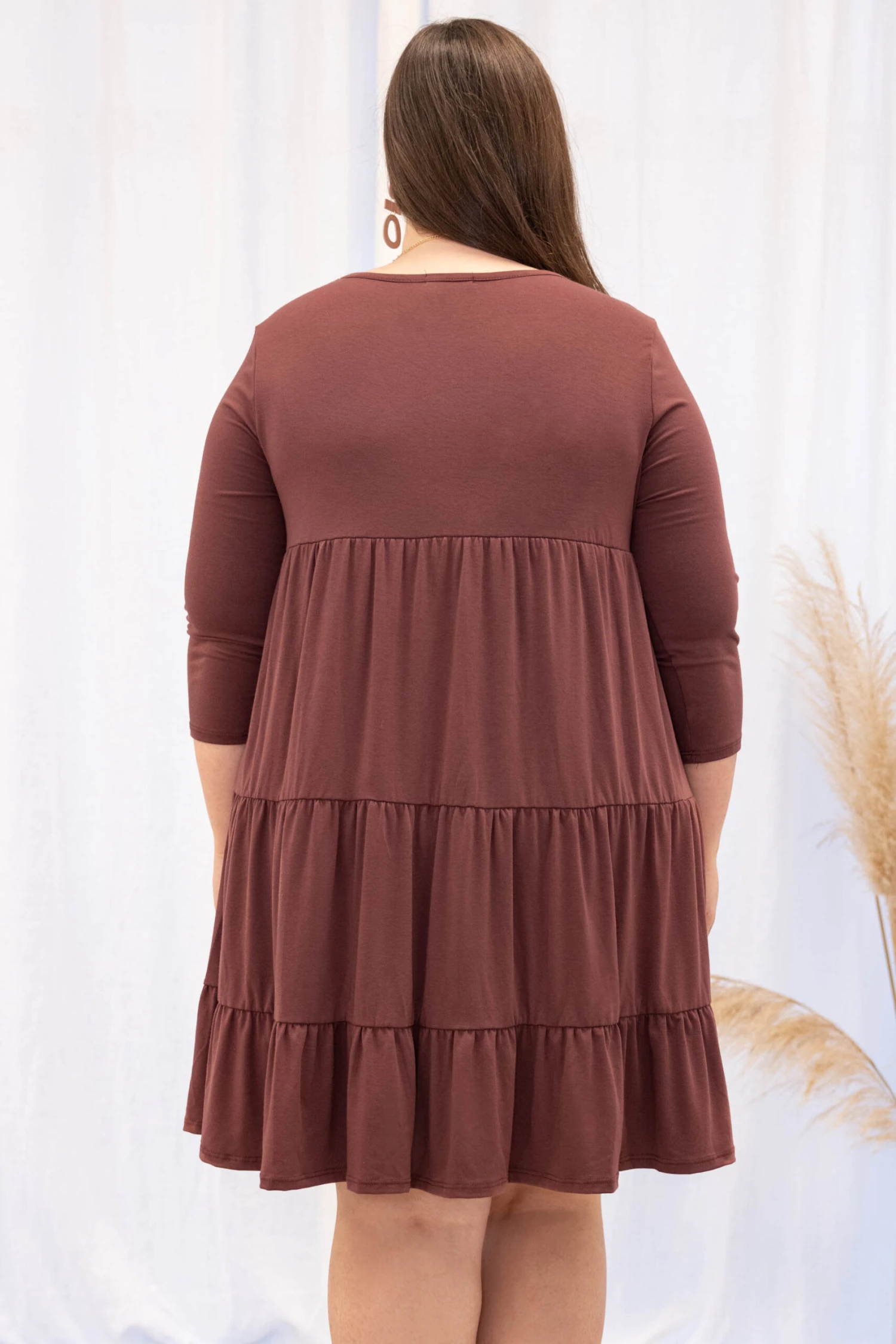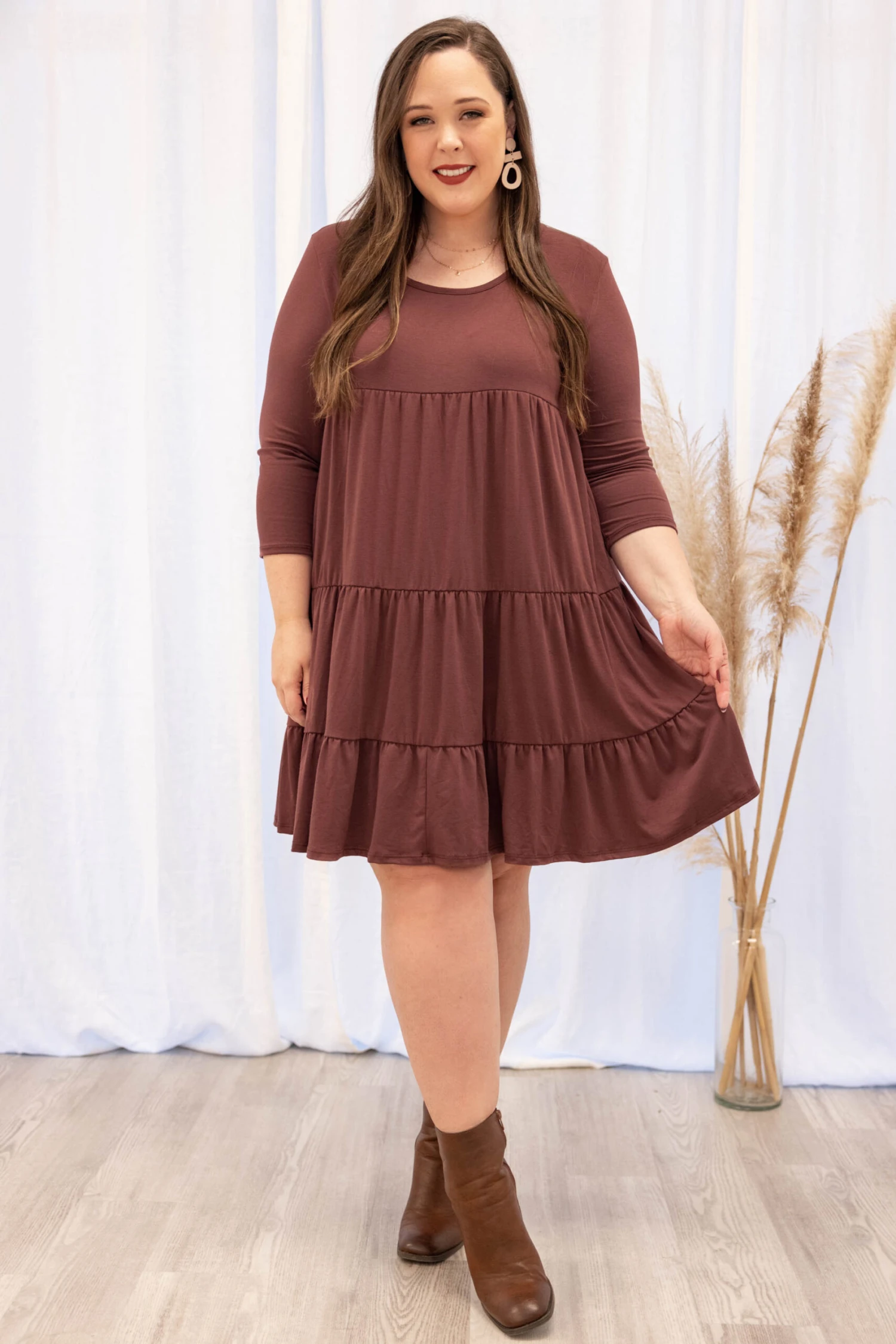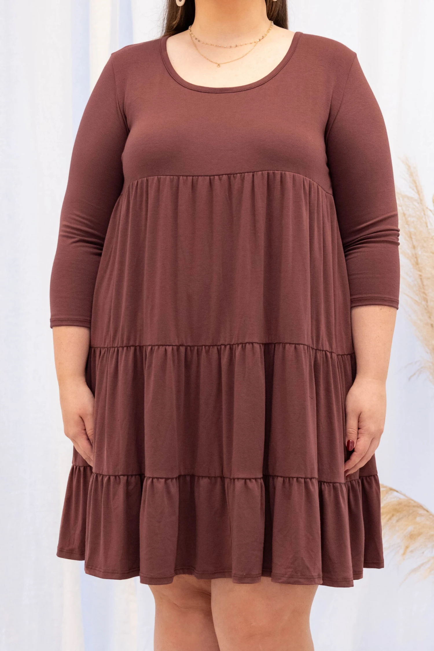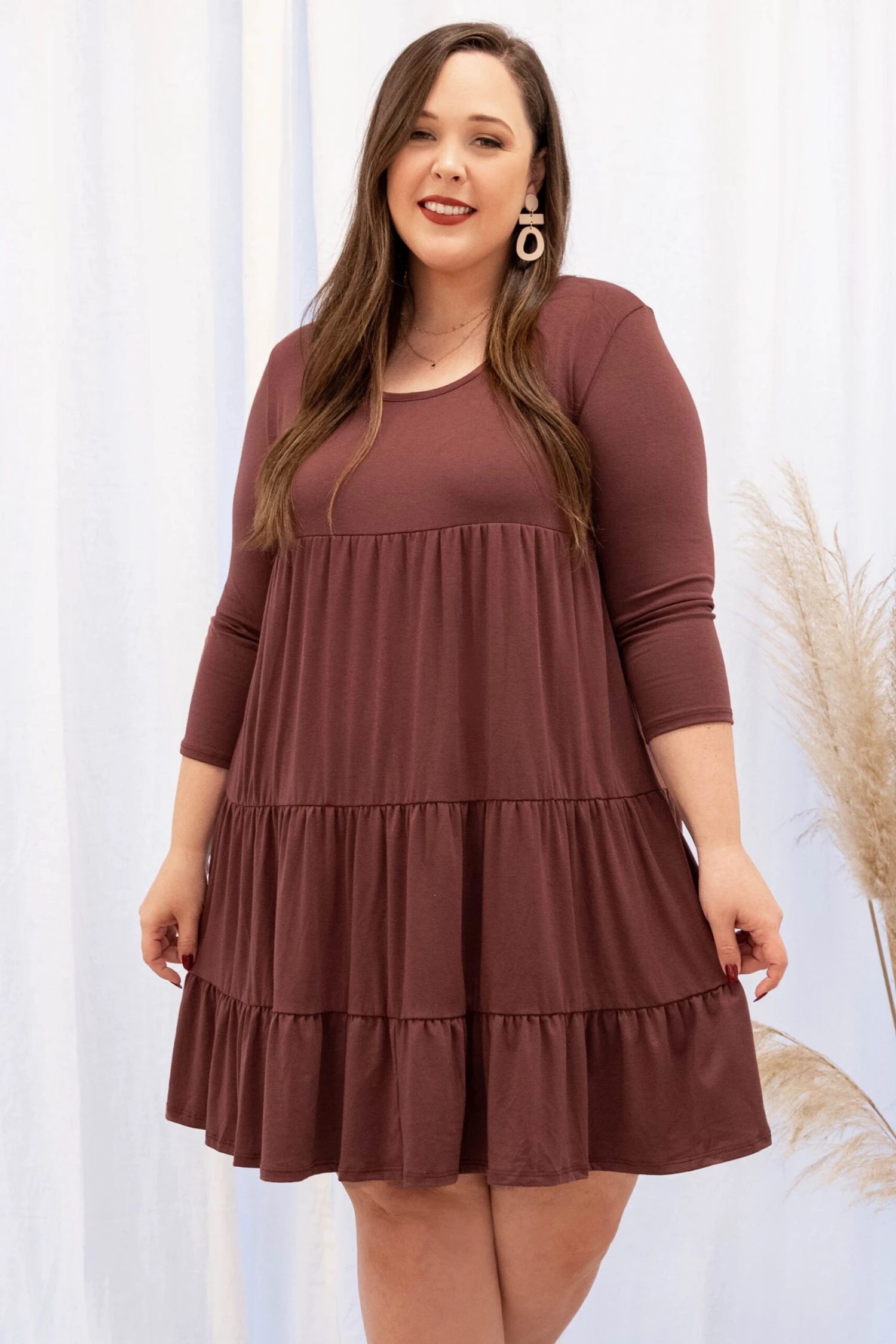 This dress was made for Fall! This dress has a solid neutral color you can dress up or down for every occasion! It’s comfortable for all-day wear, has a figure-flattering fit, and features a tiered baby doll design we adore! Simply pair this dress with booties or heels for your next event!