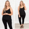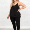 This cutie is a must-have! This tank has a classic black color that is so easy to pair with all of your fave cardigans and blazers all year long! The flowy fit with the raised polka dot pattern is so chic! Simply style this tank with a cute cardi and pants for a classy chic look!