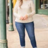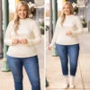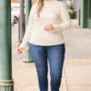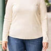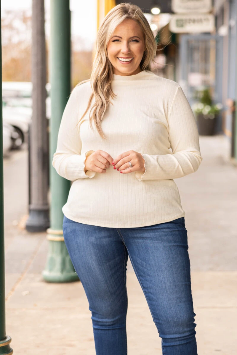 Strike a pose in this lovely top! This top has a neutral color with a ribbed texture that is so comfy and chic! The high neckline and stretchy fit is perfect for all day wear throughout the season! Style this top with some skinnies and boots for a cozy casual look!