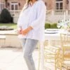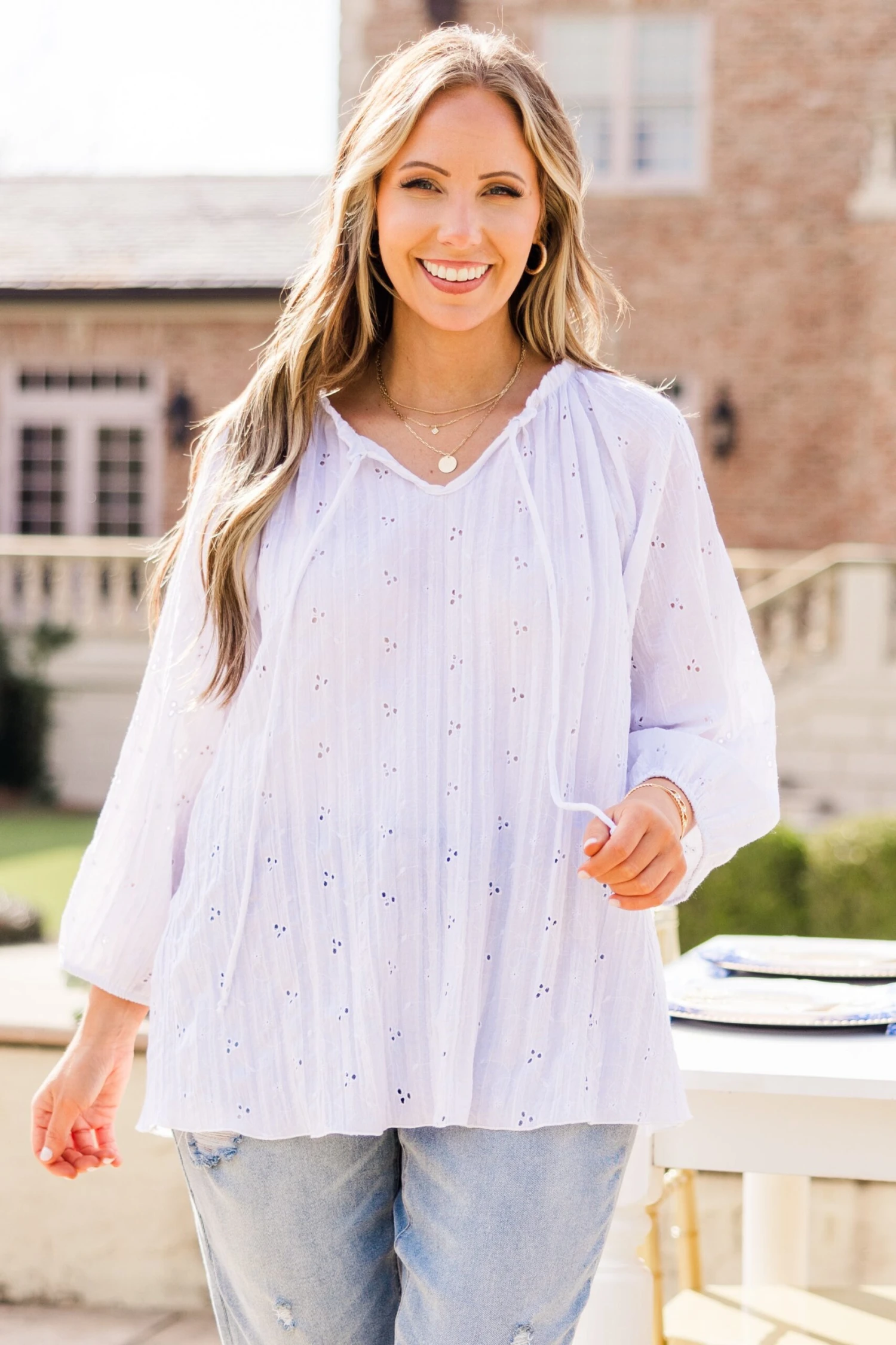 You’ll be the talk of the town in this classic cutie! The elegant, eyelet design adds a touch of sophistication to this top! With delicate ruffle detailing, this top exudes charm and style. Perfect for any occasion, this top is a must-have for any fashion-forward individual!