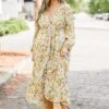 Get ready to talk about how fabulous you look in this dress! This vibrant yellow, boho floral dress features long sleeves and a playful ruffled design! With a convenient button closure at the bust and elastic cuffs, you’ll feel comfortable and stylish all day long! Don’t be afraid to stand out and show off your unique style!