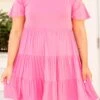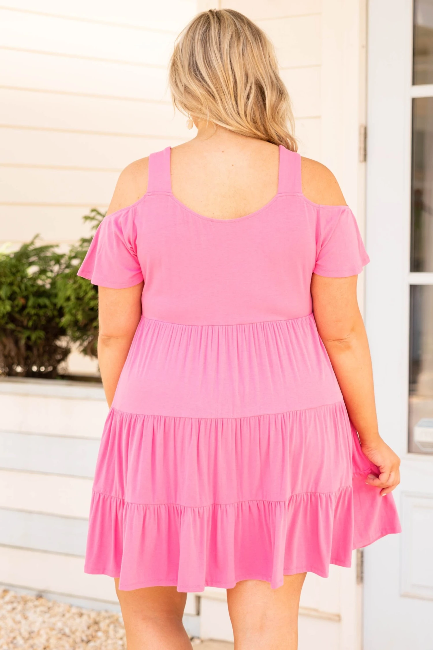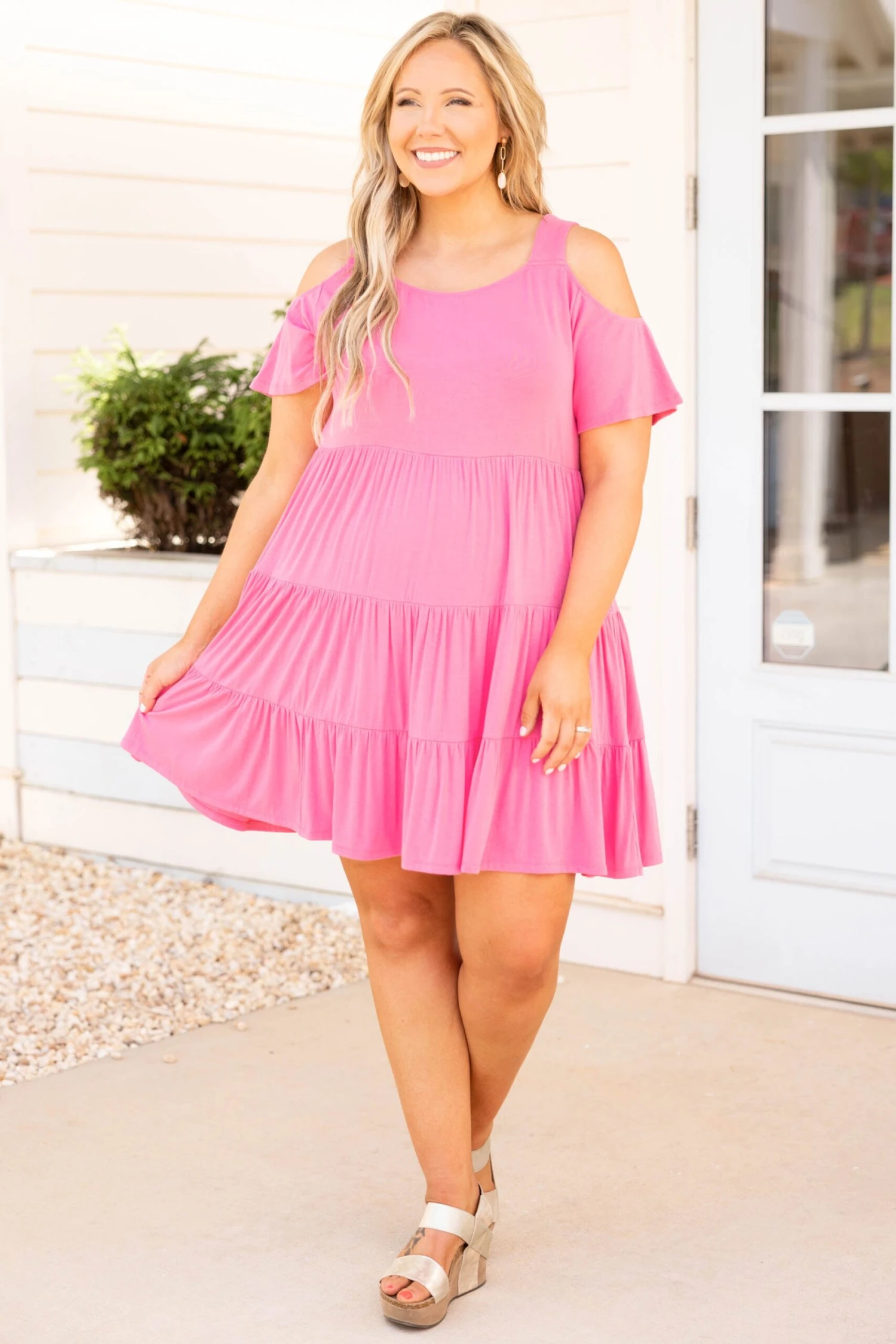 Show off your taste and style in this dress! This cutie has a solid hot pink color that is perfect for dressing up or down! The tiered style will flatter your figure perfectly and the cold shoulder sleeves are so trendy! Style this with some wedges or heels for a perfect look!