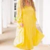 This FAB dress is a perfect choice for any occasion! Its figure-flattering fit and beautiful yellow color make it a stylish addition to your wardrobe! With a midi length, you can be sure to look effortlessly elegant and on-trend with this dress!