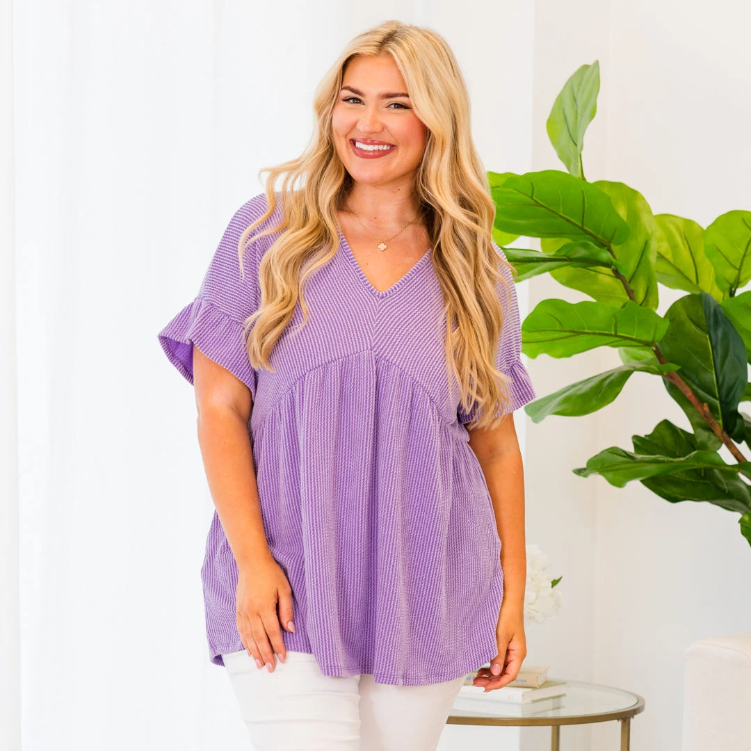 Indulge in comfort and style with our Tell Me The Truth Top! This lovely lilac top is made of a stretchy and textured material, perfect for all-day wear. Its babydoll design adds a touch of femininity to your wardrobe. Get ready to feel confident and beautiful in this must-have piece!