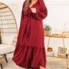 Let this beauty tell your story! This beauty features an adorable waist tie that cinches in your waist for a flattering silhouette! The pretty burgundy color adds a pop of color to your wardrobe! Functional pockets make this dress both stylish and practical! Enjoy the flowy fit and feel confident in any setting!