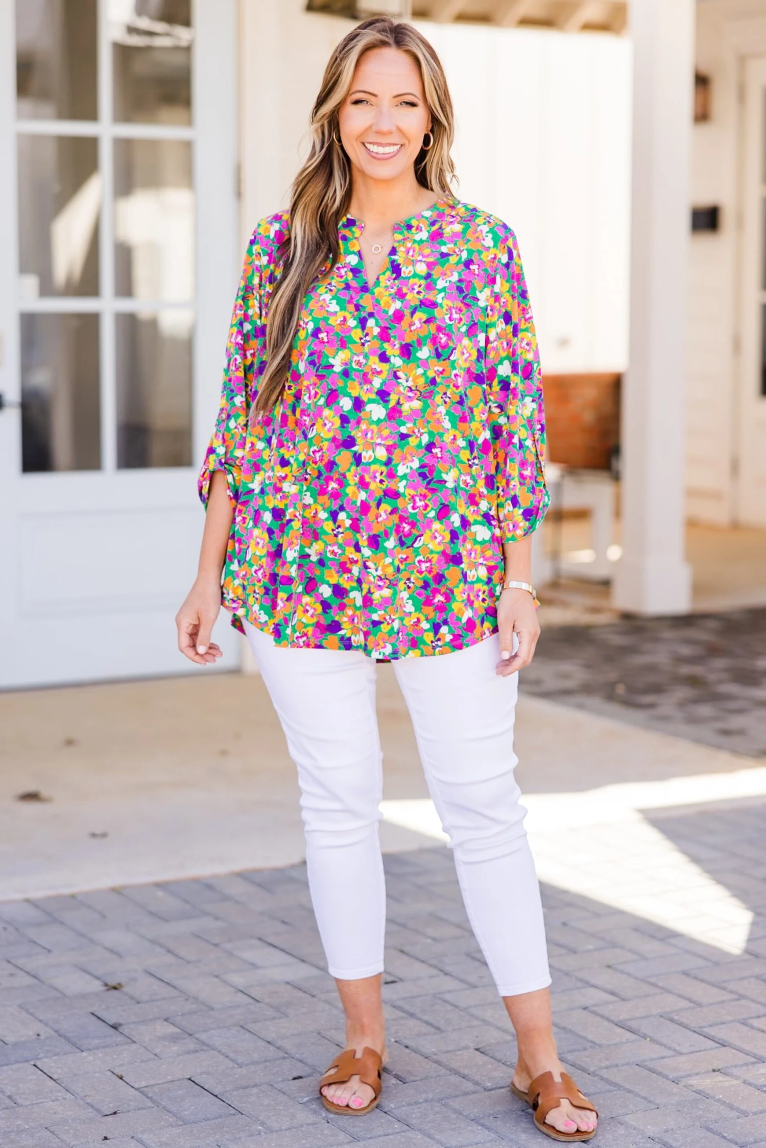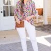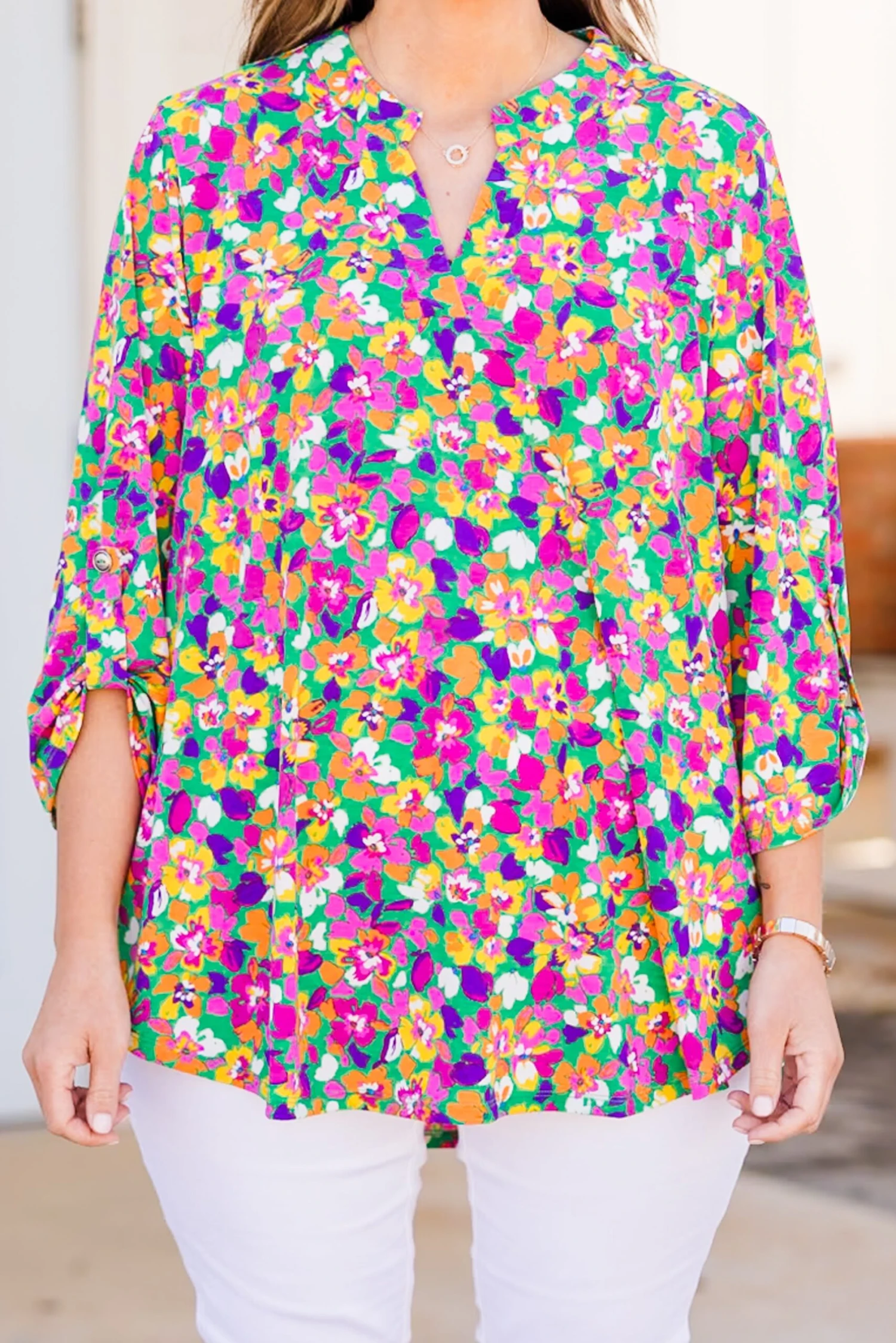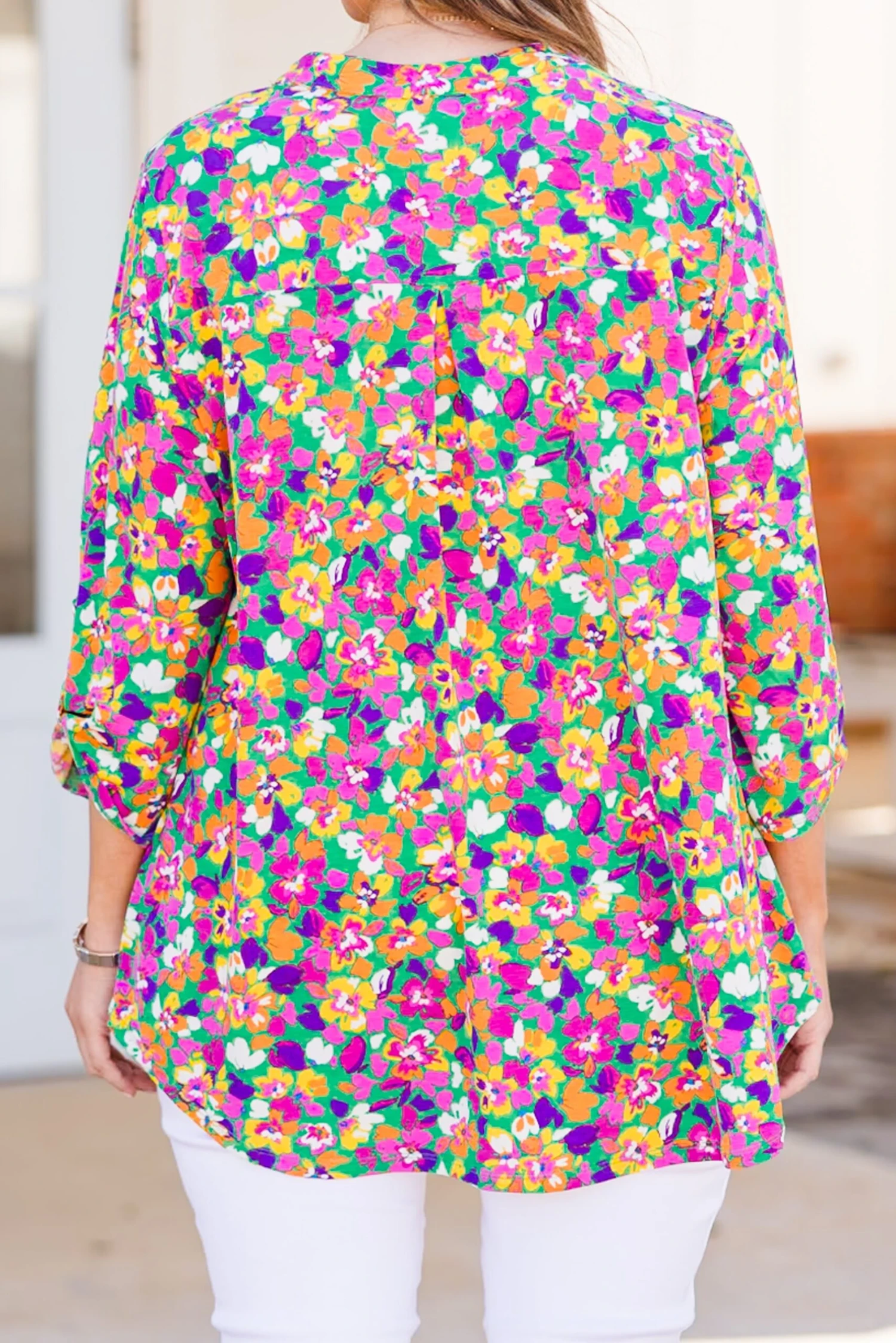 This top has stolen our hearts! It features a wrinkle-free, easy care design, making it the perfect choice for looking and feeling great all day long! The lovely emerald color and beautiful floral pattern add a touch of sass that is just in time for the season!