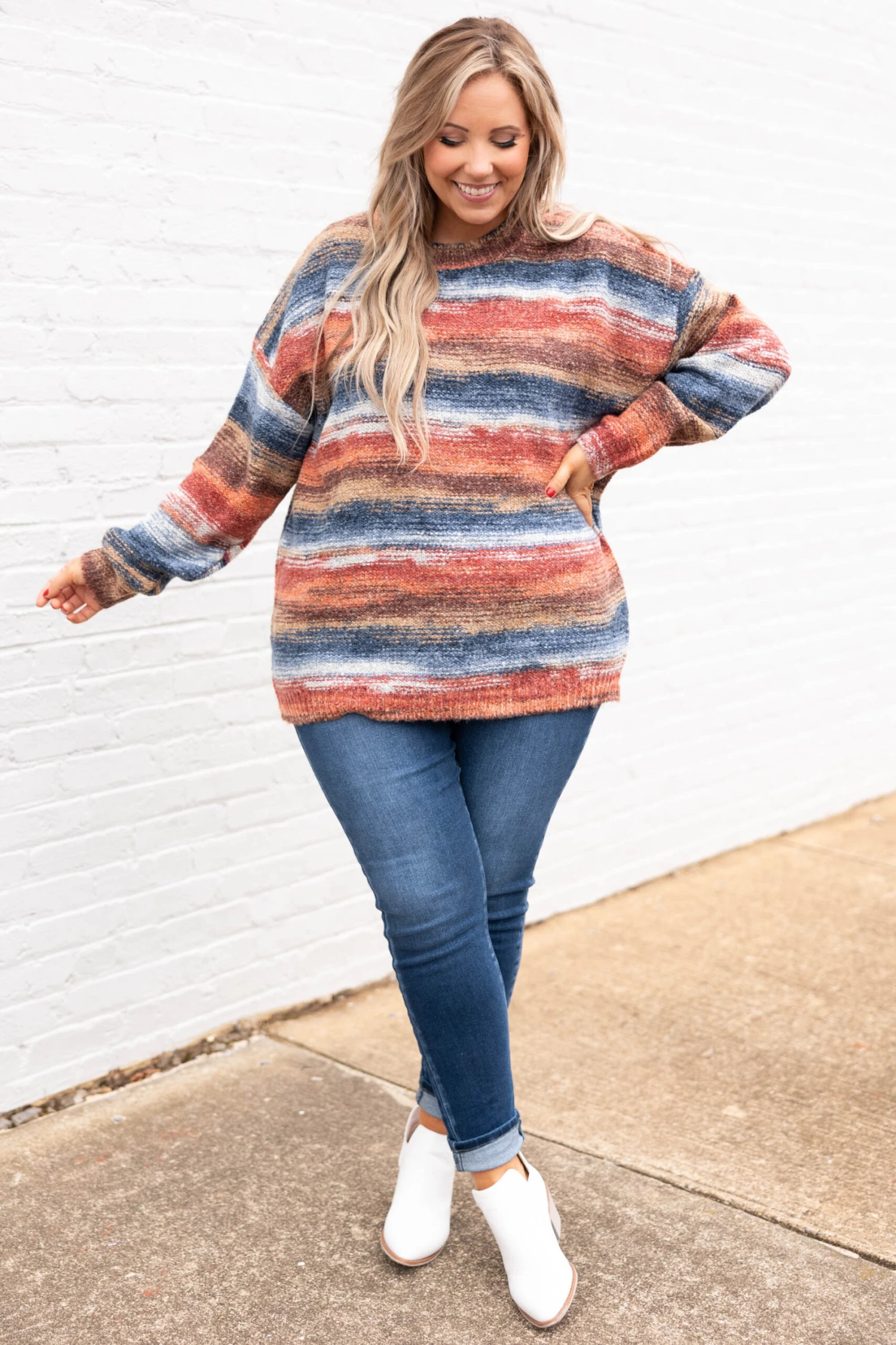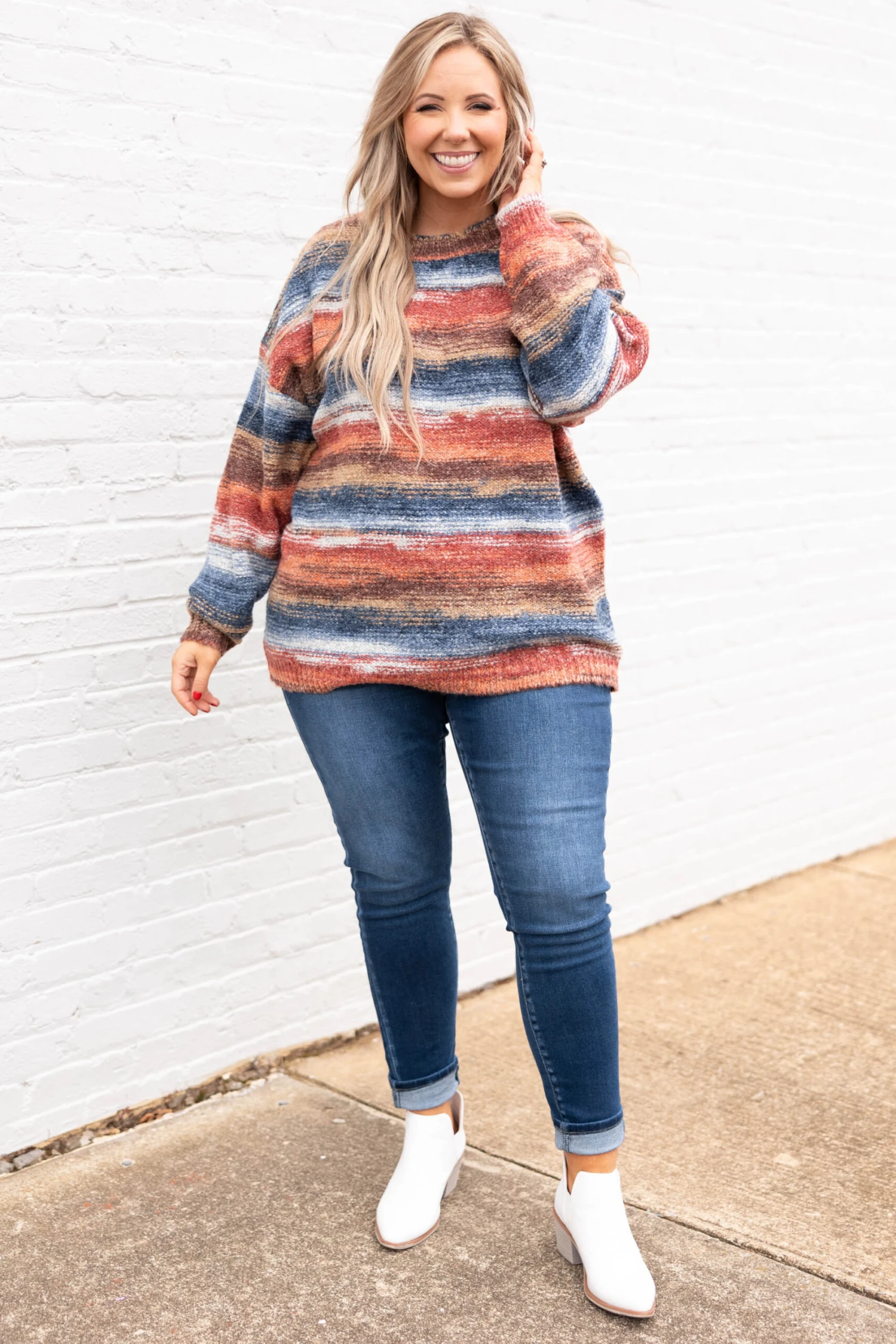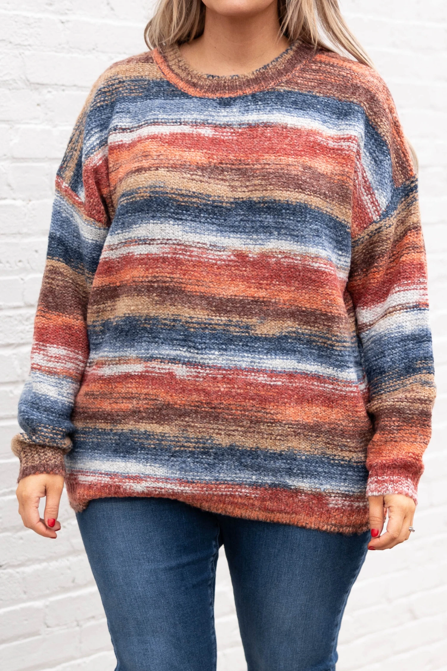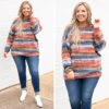 Wrap up your wardrobe with this beautiful sweater! This sweater has a gorgeous color mix that is just in time for the season! The colorblock design and knitted style is super cozy and sweet! Style this sweater with some skinnies and booties for the ultimate casual look!