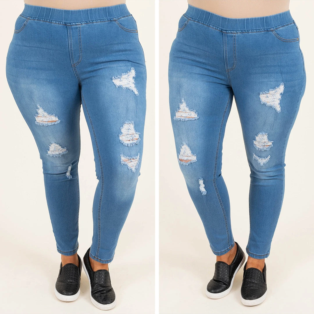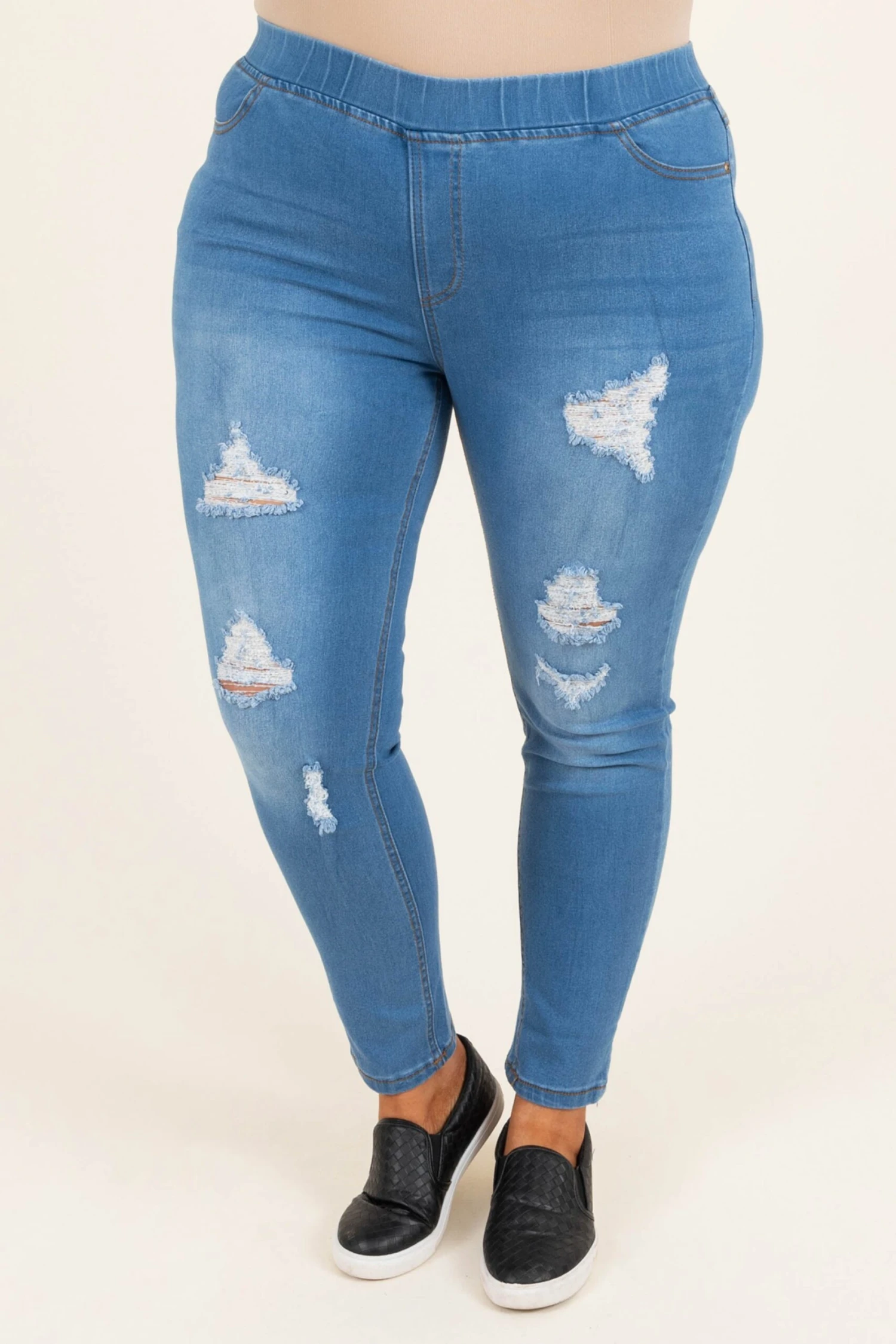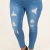 Need that Sunday feeling on a weekday? Grab these lovely jeggings and make every day feel like Sunday! These jeggings are SO comfy and cute that you will forget you’re wearing them! The gorgeous light wash and distressing on the front is super trendy! Style these jeggings with a cute top and sneakers for a casual, chic look!