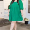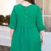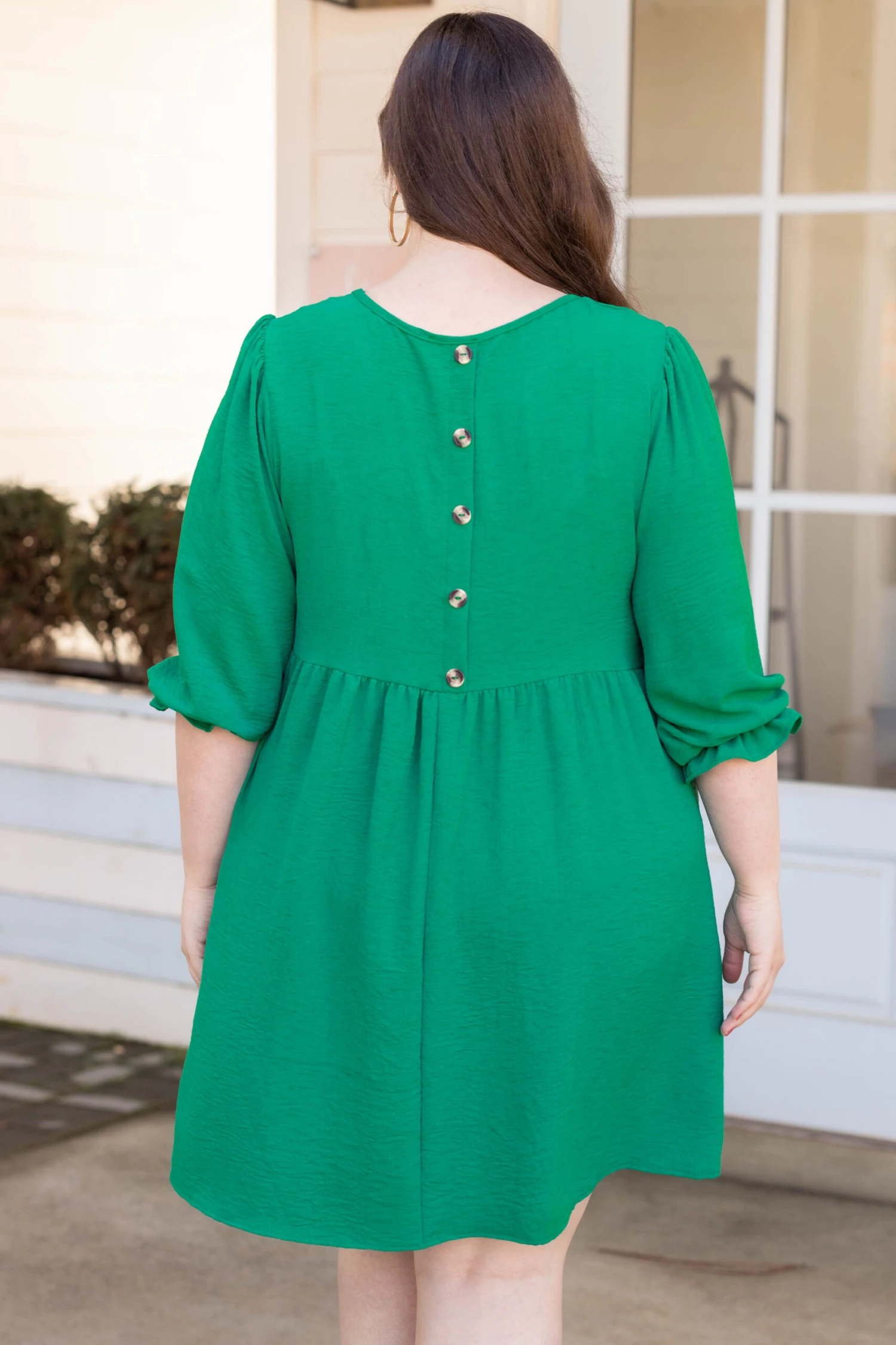 This dress has us obsessing! The hunter green color is so bold and pretty with the trendy puff sleeves! This babe has a babydoll flowy style that is sure to flatter and the functional buttons down the back are the perfect final touch! Pair this with some nude sandals and a cute necklace to look like you stepped straight off the runway!