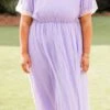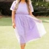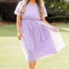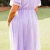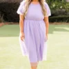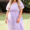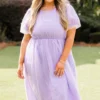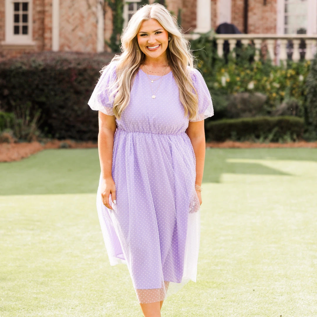 Dazzle the crowd with your beauty in this mesmerizing dress! Expertly crafted with a delicate raised polka dot pattern, this dress in lovely lavender exudes understated elegance! Its functional pockets and bubble sleeves add both style and practicality to this timeless piece! Perfect for both formal occasions and everyday wear!