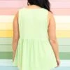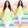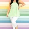 You + this tank = the perfect combo! This top has a green color with a textured, babydoll design that is a season favorite! The fun color is perfect to pair with some cute shorts or skinnies for a classic chic look!