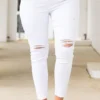 These skinny jeans are MAGIC!!! The fit, distressing and medium wash make them so trendy and cool! They will instantly take your outfit to a whole new level of trendy! These skinnies look great with any color tops, tunic or jackets!Â