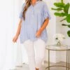 It would truly be a misfortune to miss out on this beauty! This top will turn your frown upside down! Featuring charming pleated detailing, a playful ruffle detail, and a flowy fit, this lovely chambray top is sure to bring some joy to your wardrobe! Embrace the chic style of life with this top!