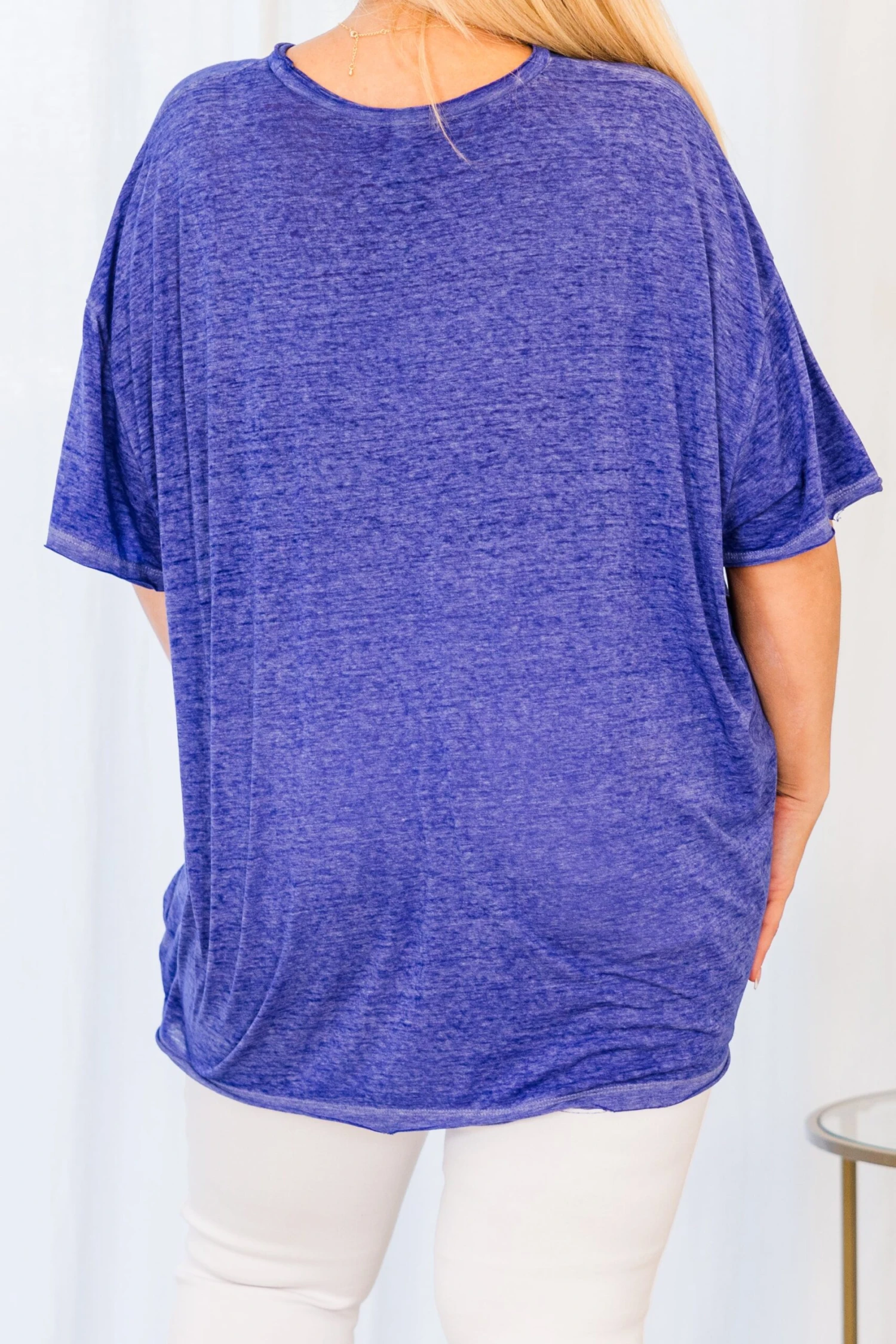 Introducing The Night We Danced Top, a bright blue burnout tee that will become your go-to for any occasion! Its versatile design allows you to easily dress it up or down, making it a must-have staple in your wardrobe! Embrace style and comfort with this top!