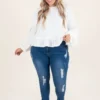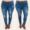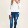 You can hit the open road comfy in these jeans! These jeans have a gorgeous medium wash, distressed design and they are comfortable for all day wear! These jeans are the perfect addition to your wardrobe for the season! Style these jeans with a cute top and booties for a trendy, casual look!